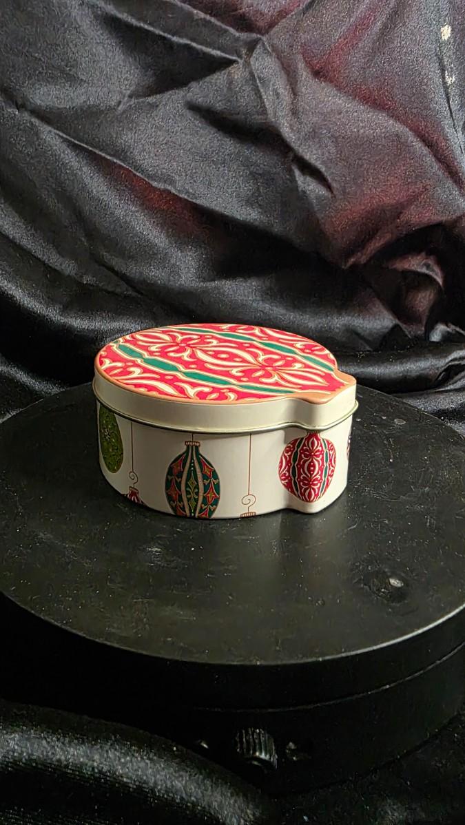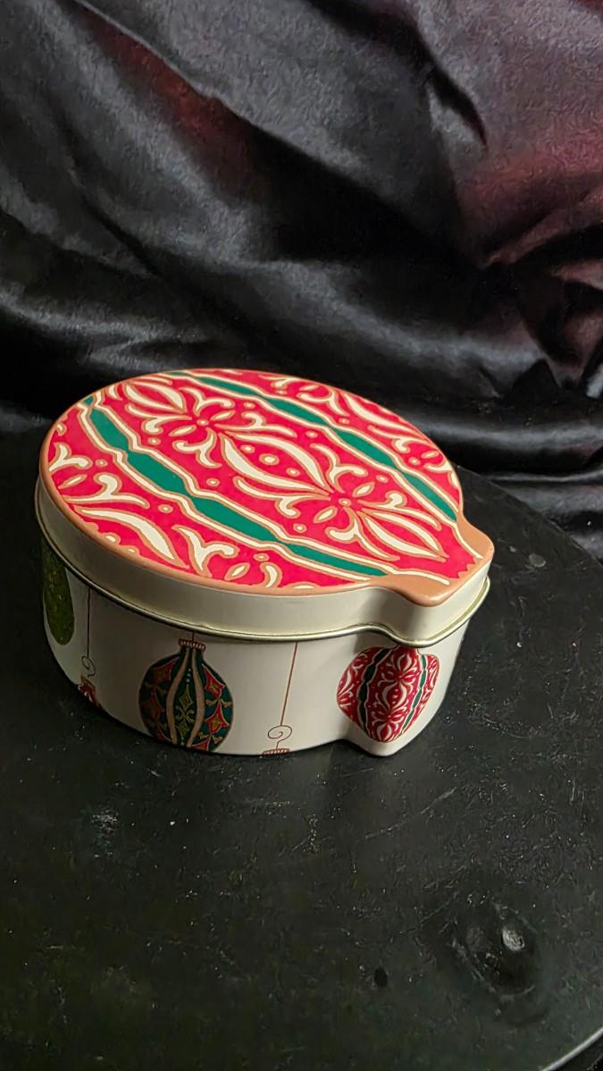 A playful twist on traditional round tins, this piece doubles as décor—ready to nestle among real ornaments on a tabletop tree, sit pretty on a counter, or become the most clever gift packaging of the year. For collectors of shaped holiday tins, ornament lovers, or anyone who believes Christmas should be as fun as it is beautiful, it's a dazzling find that turns storage into pure seasonal magic.
