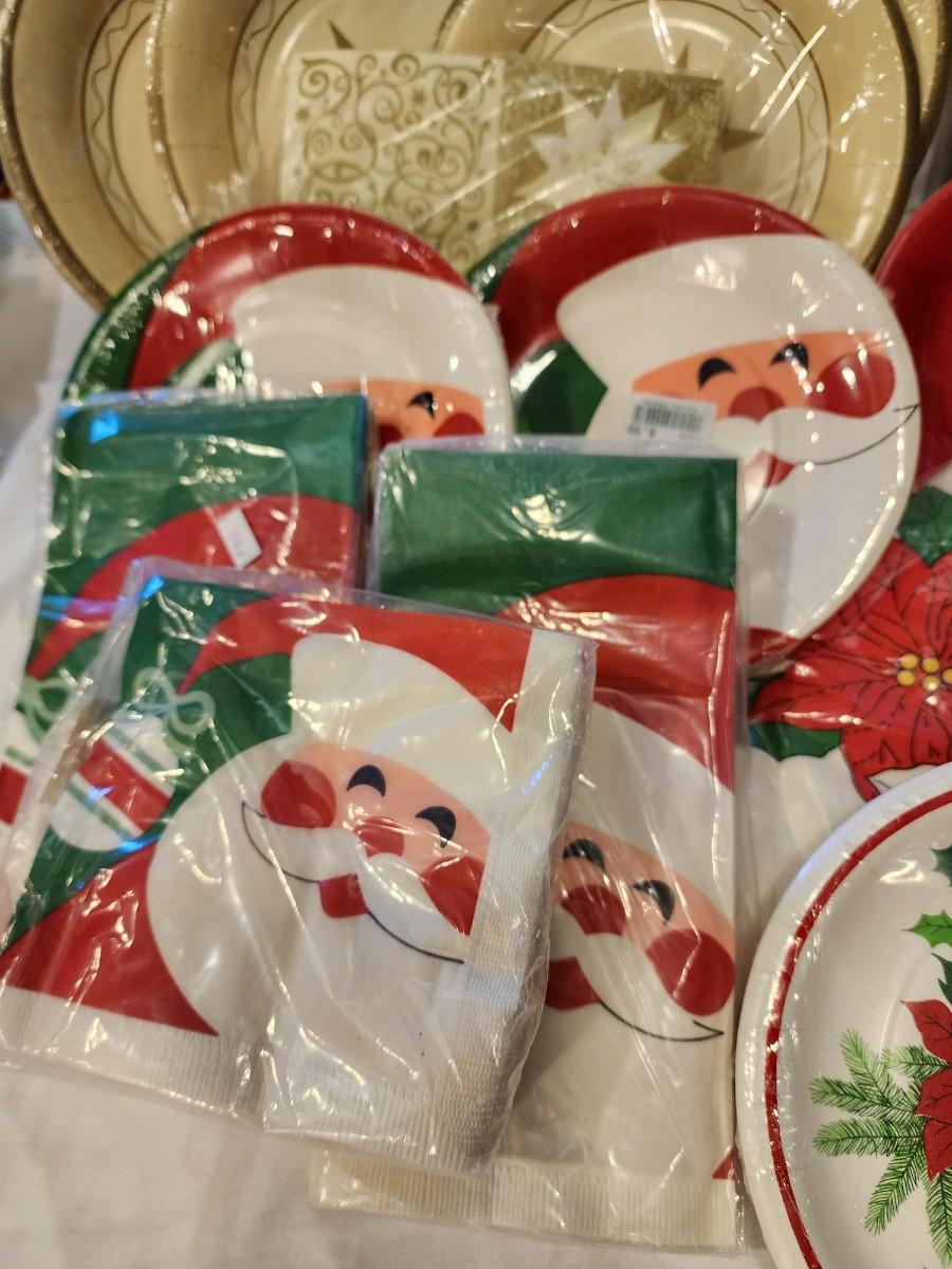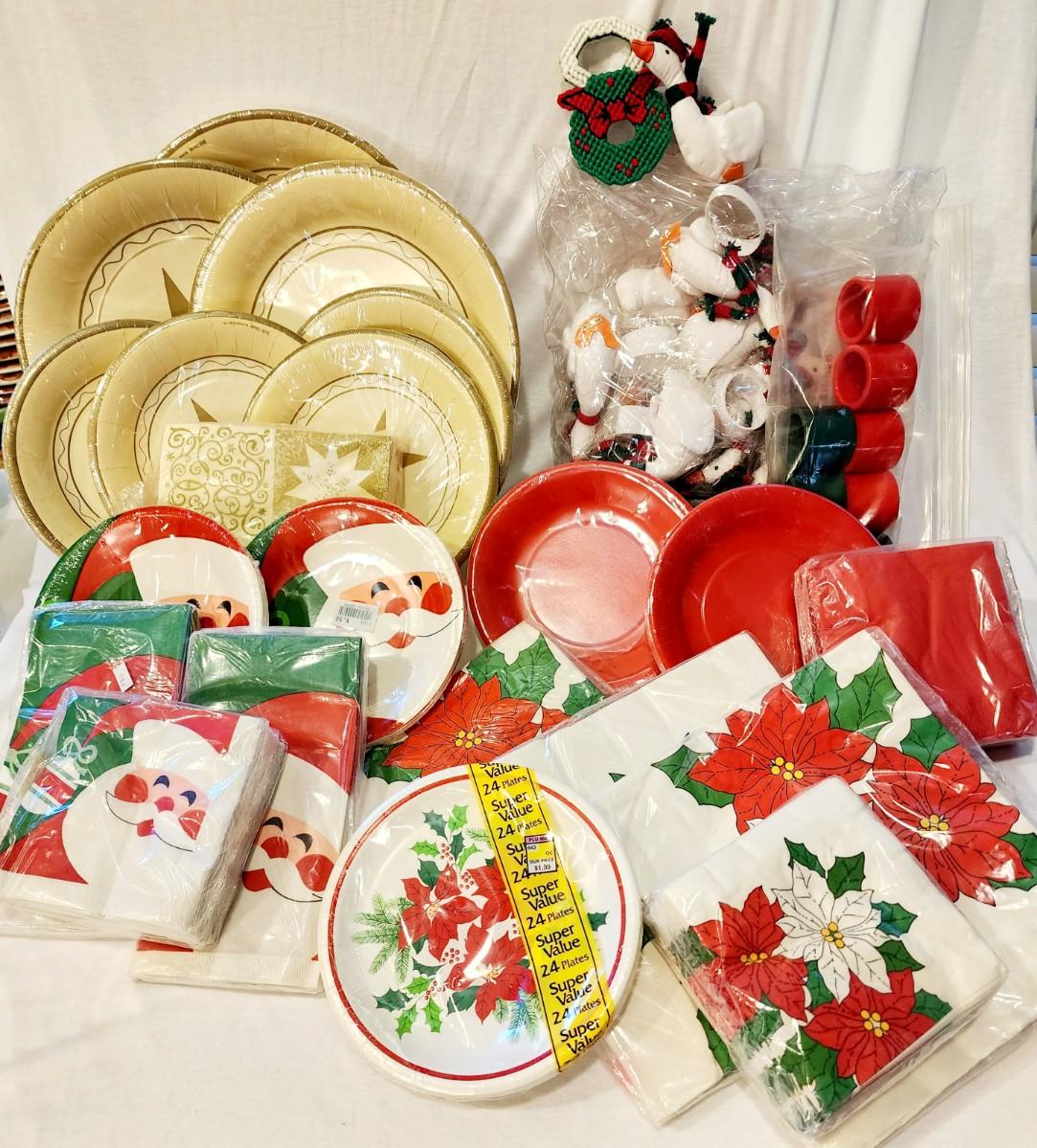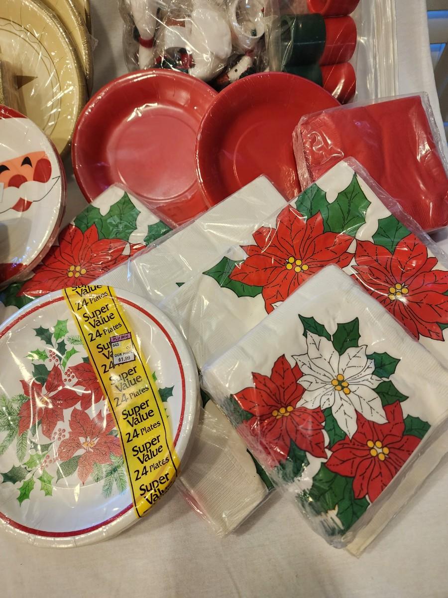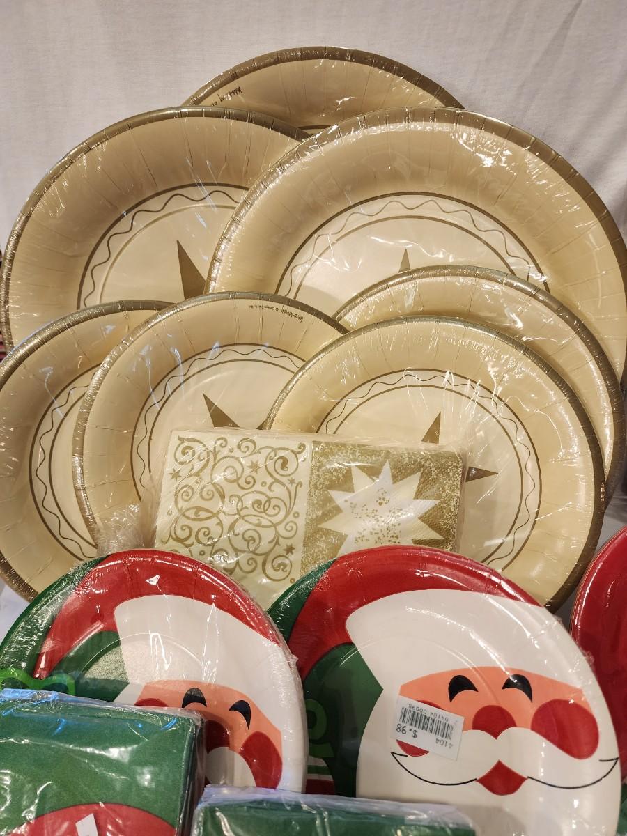 Lots of 1980s paper plates and napkins, all new/old in their packages.