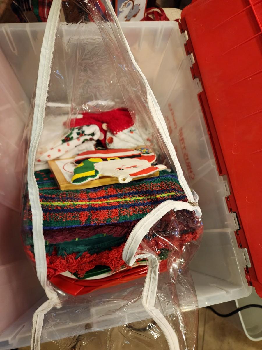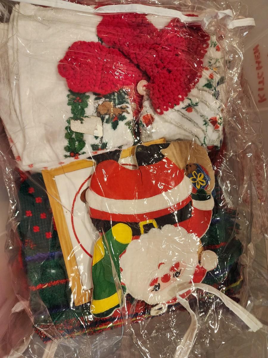 Plus a bag of misc Christmas stuff that looks like tablecloths, napkins and towels.