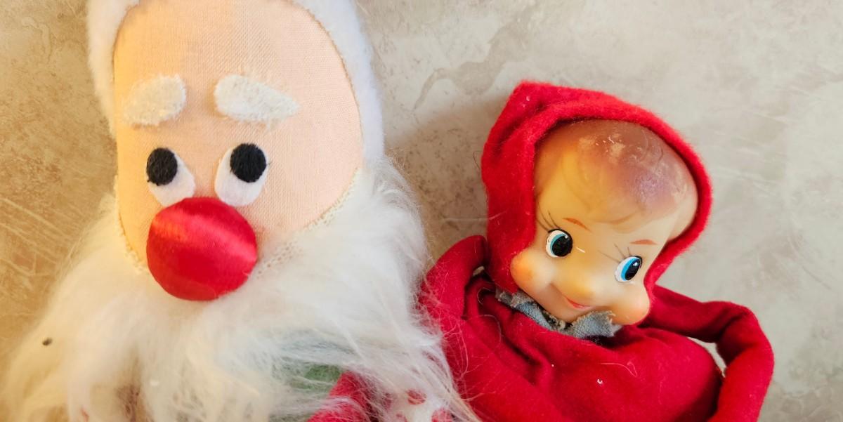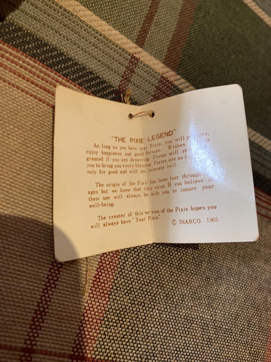 pair of pixies. ONe on the right has zipper in the back and comes with PIxie Legend booklet. Both like new, yet they are old!