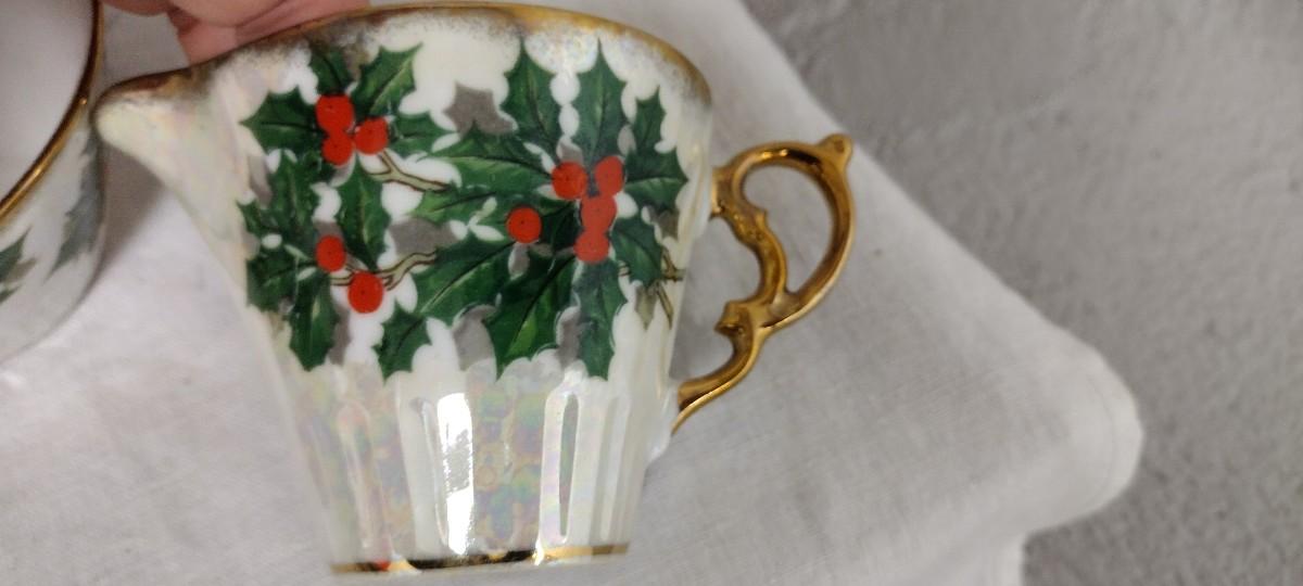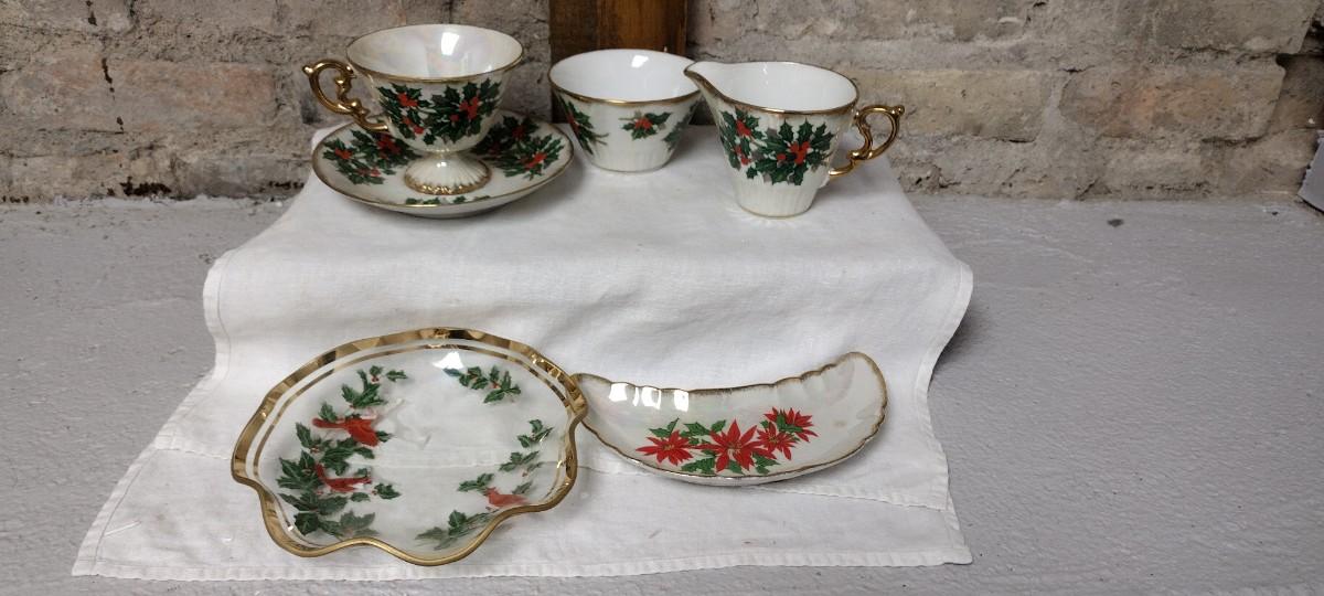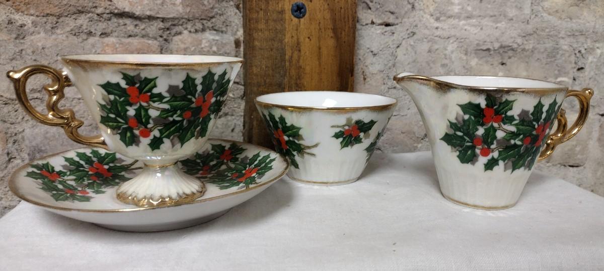 Cup and Saucer, nappy, cardinal plate, cream and sugar