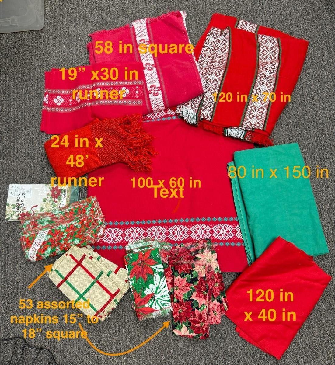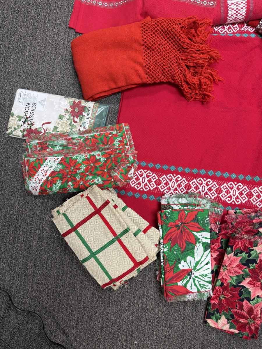 Vintage Christmas red green Holiday Table Linen - tablecloths, napkins, runners