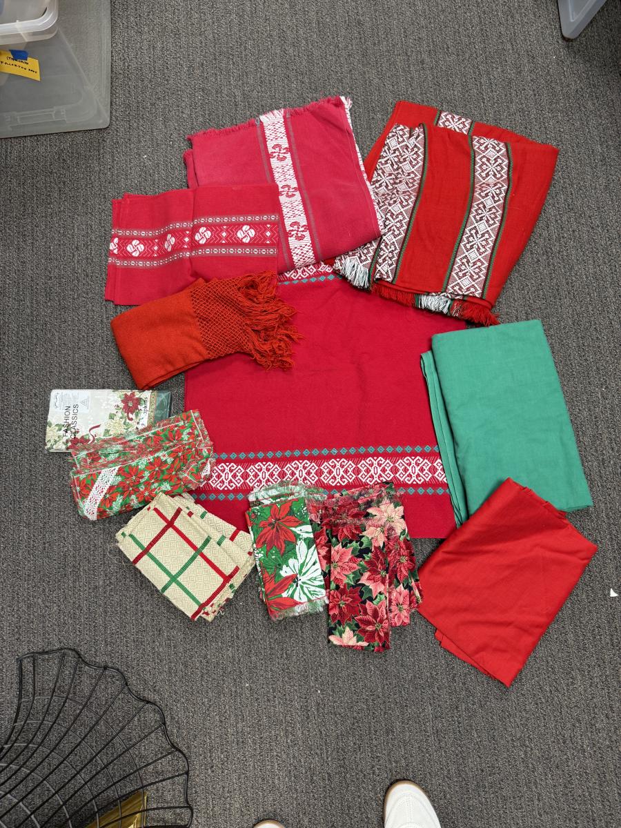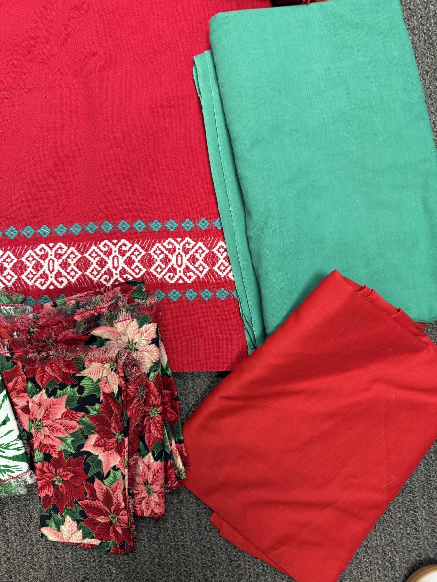Vintage Christmas red green Holiday Table Linen - tablecloths, napkins, runners