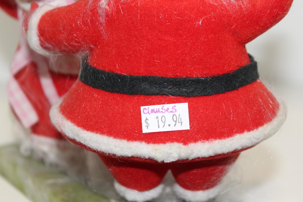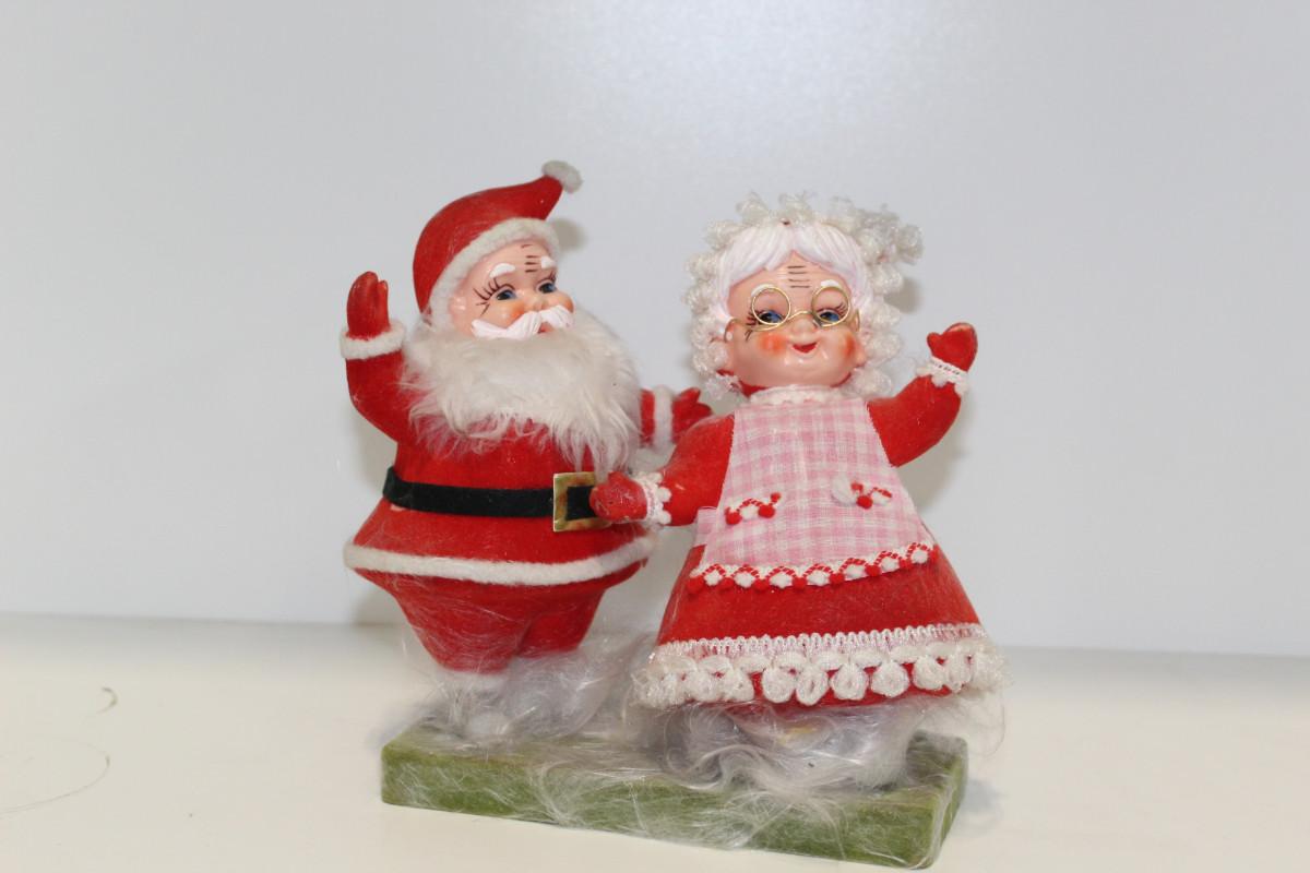 Vintage Christmas Santa & Mrs. Claus Figures on Base Flocked 7 Inch