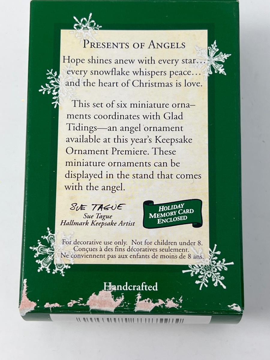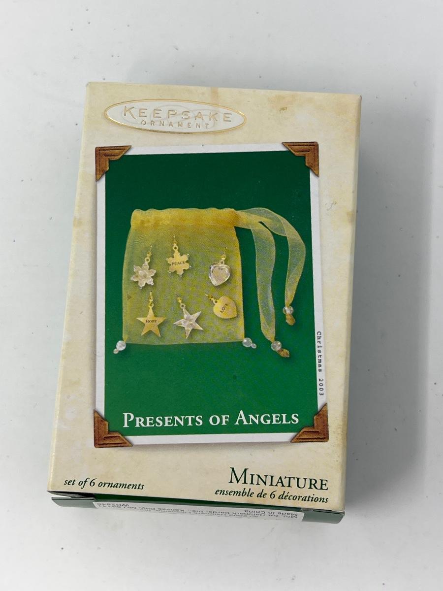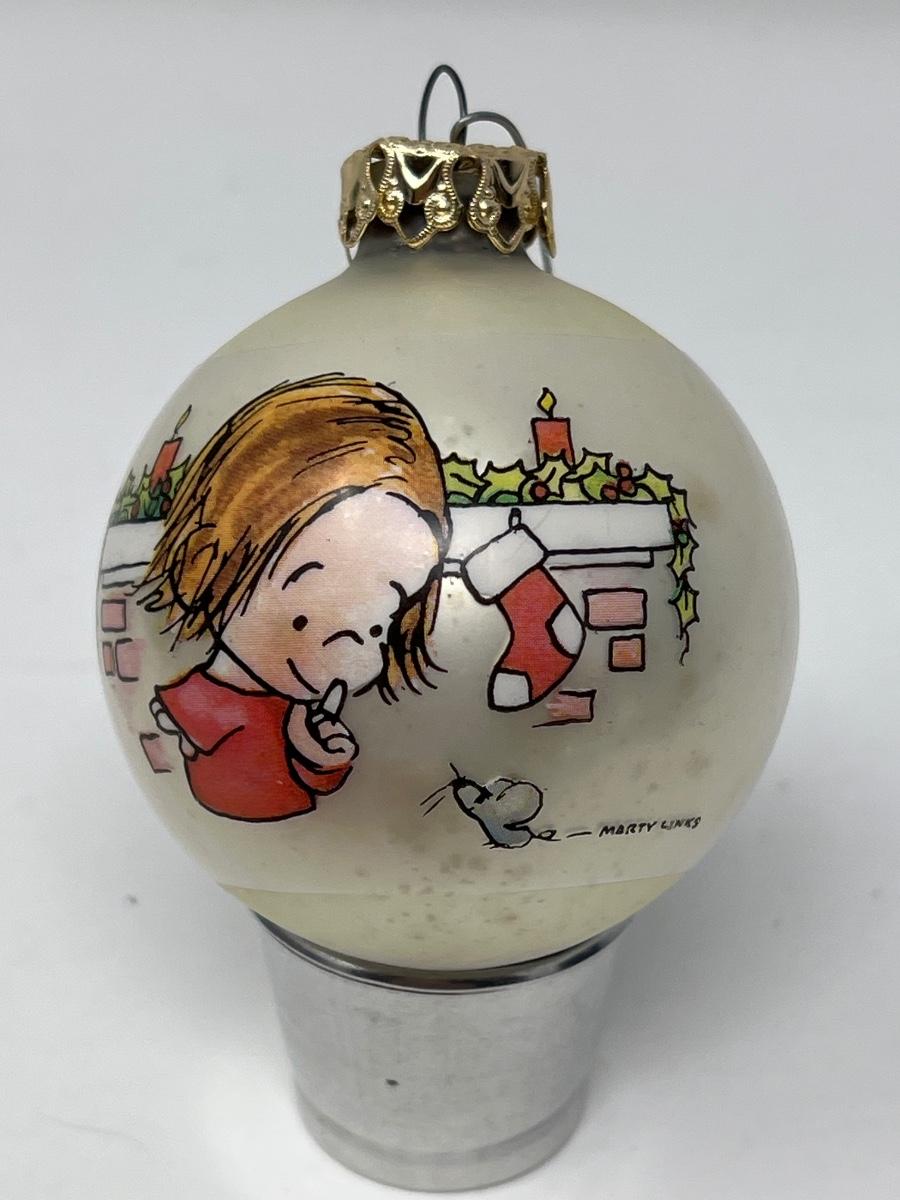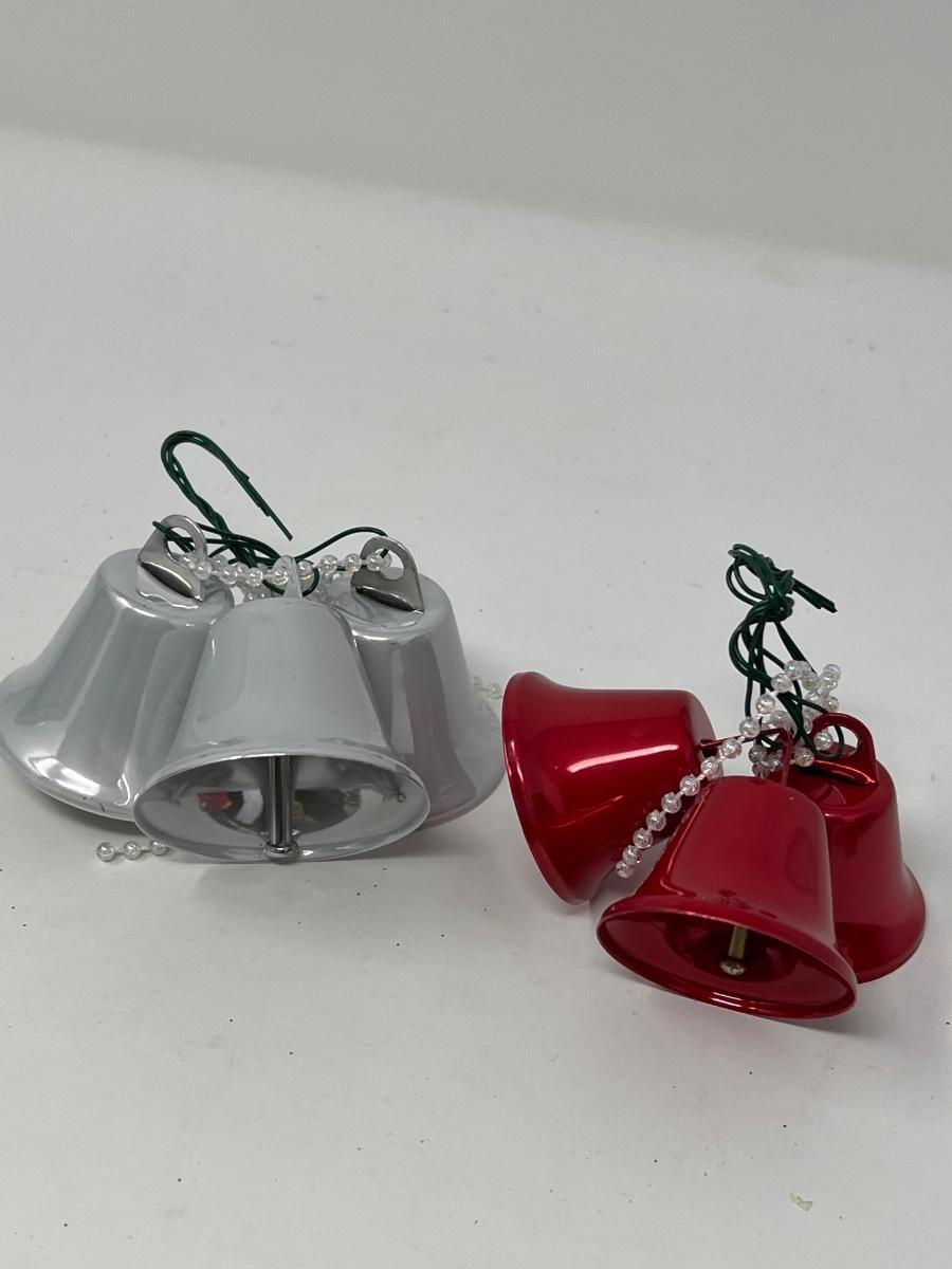 10 ornaments, 6 vintage metal red and white bells, and two gift picks made in Korea. 1973 -1976 ball ornament, Old World Market unicorn, angel, house, and pine cone. All metal bell wreath, vintage plastic cut through ball, Hallmark child in bed, Hallmark Angel’s gifts still in box. 3-4” tall or length..