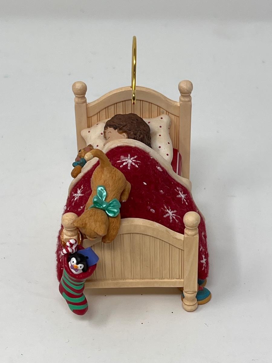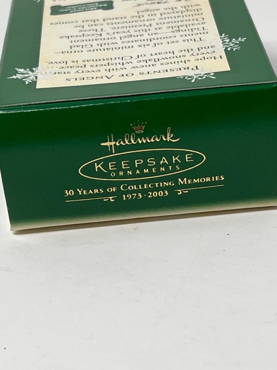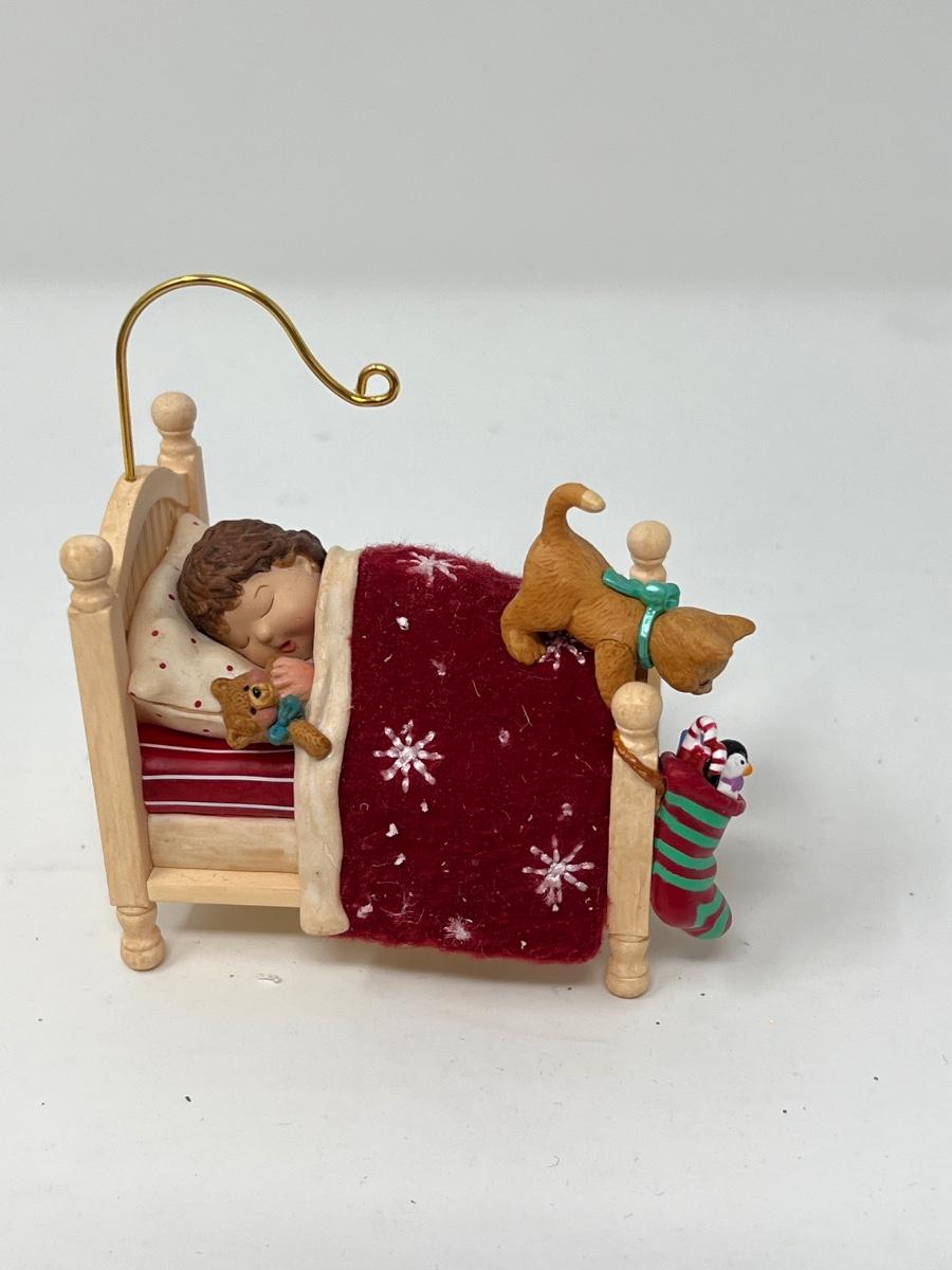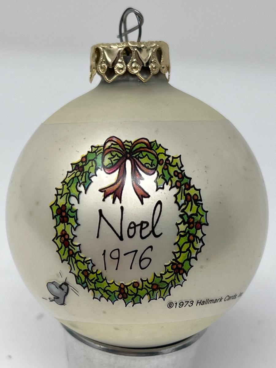 10 ornaments, 6 vintage metal red and white bells, and two gift picks made in Korea. 1973 -1976 ball ornament, Old World Market unicorn, angel, house, and pine cone. All metal bell wreath, vintage plastic cut through ball, Hallmark child in bed, Hallmark Angel’s gifts still in box. 3-4” tall or length..