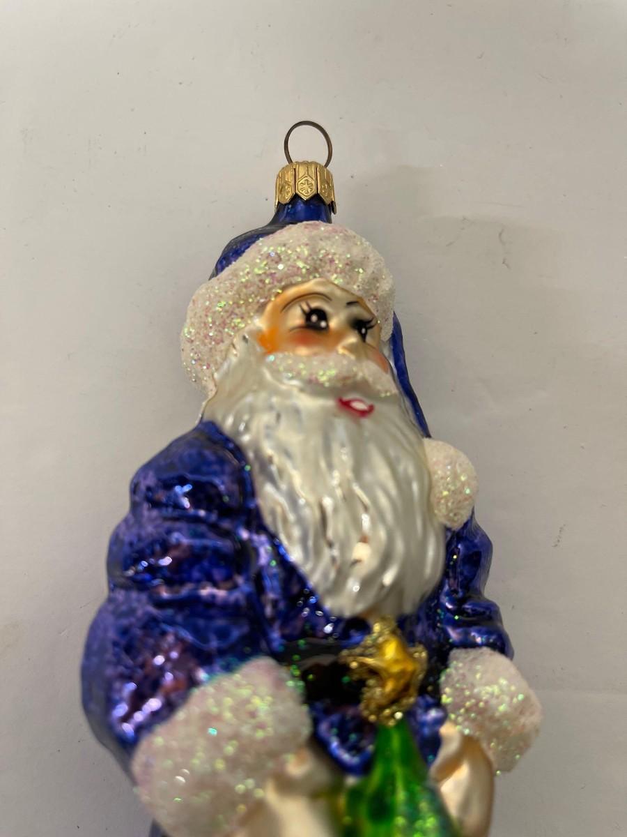 Vintage Christopher Radko Sapphire Santa Glass Ornament