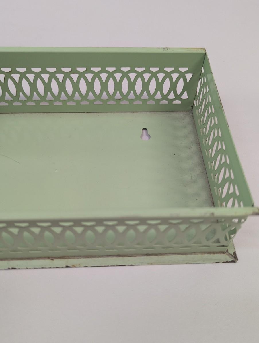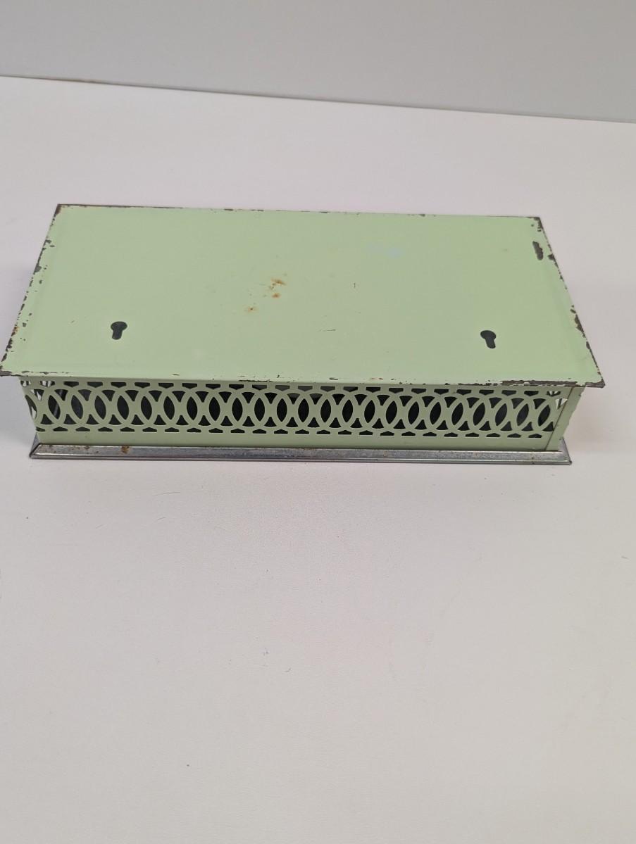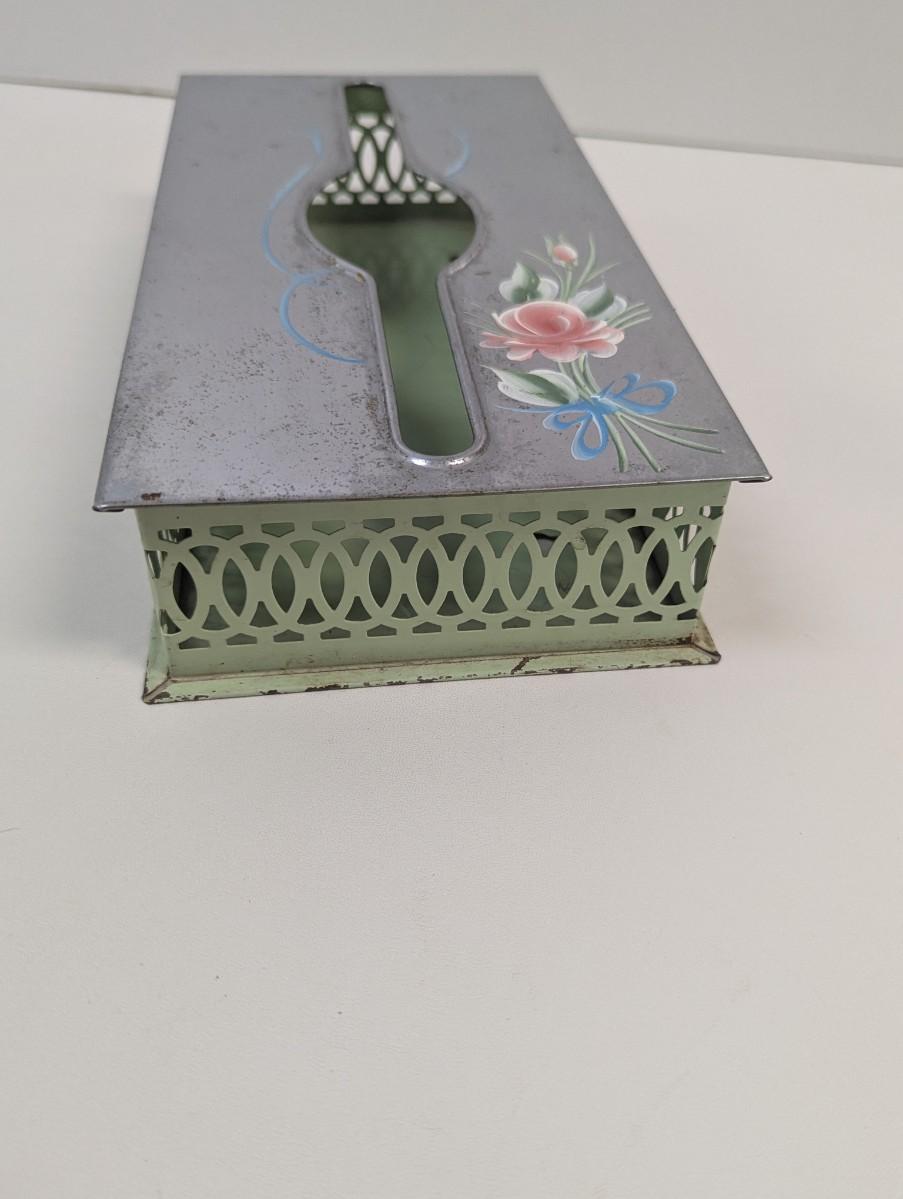 Vintage Chrome & Green Floral Hand Painted Tissue Box Wall Hanging