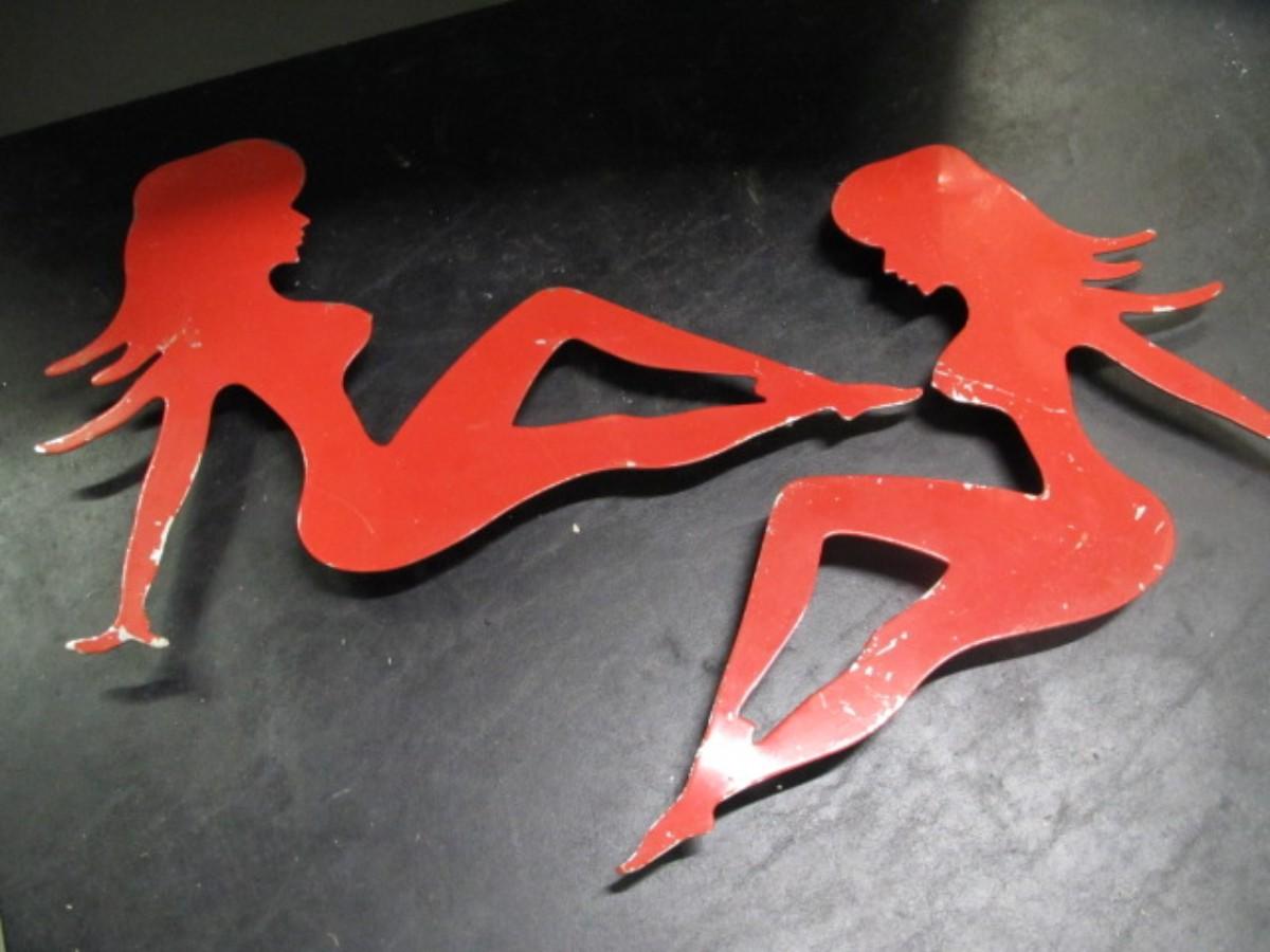 Vintage Chrome Painted Trucker Girl Silhouette Bolt On Figures