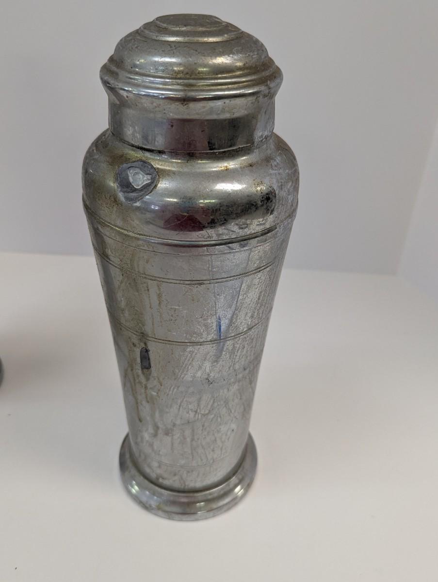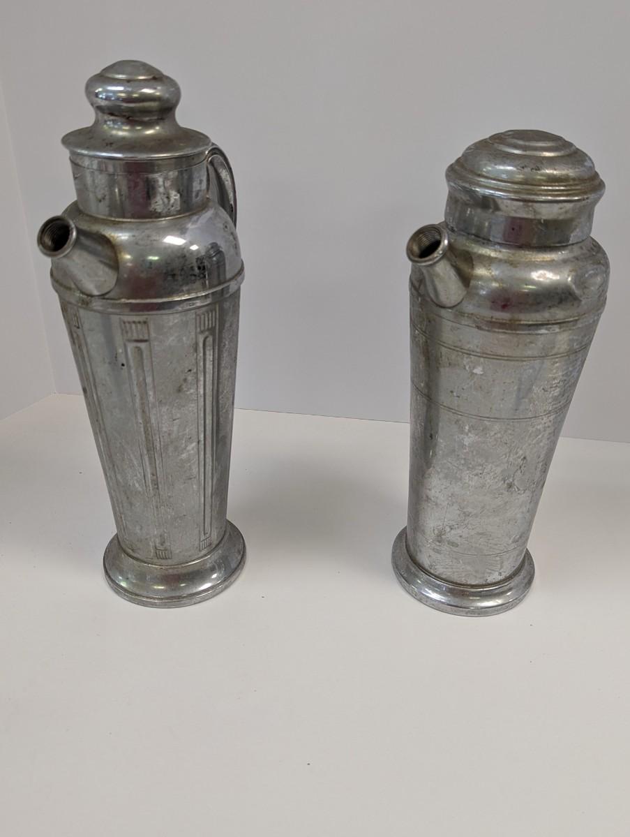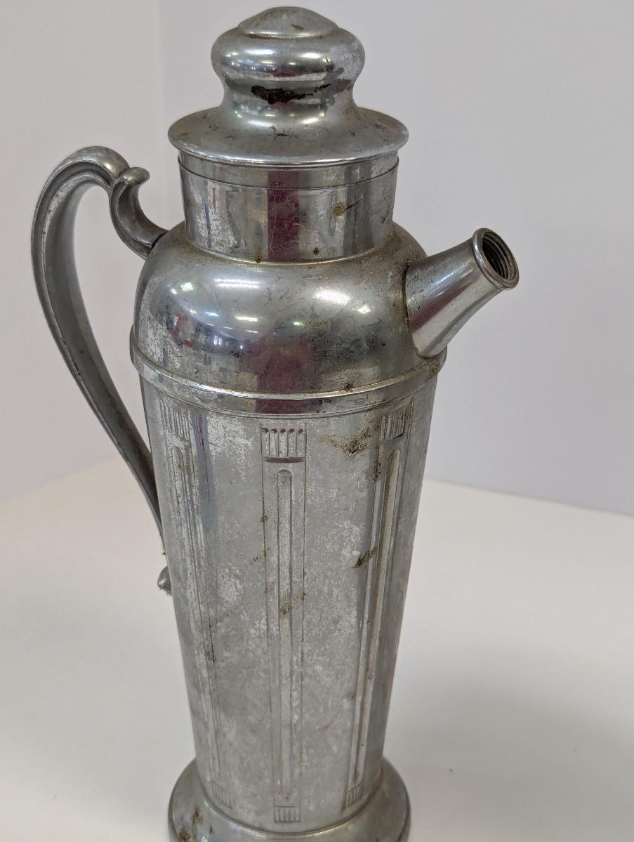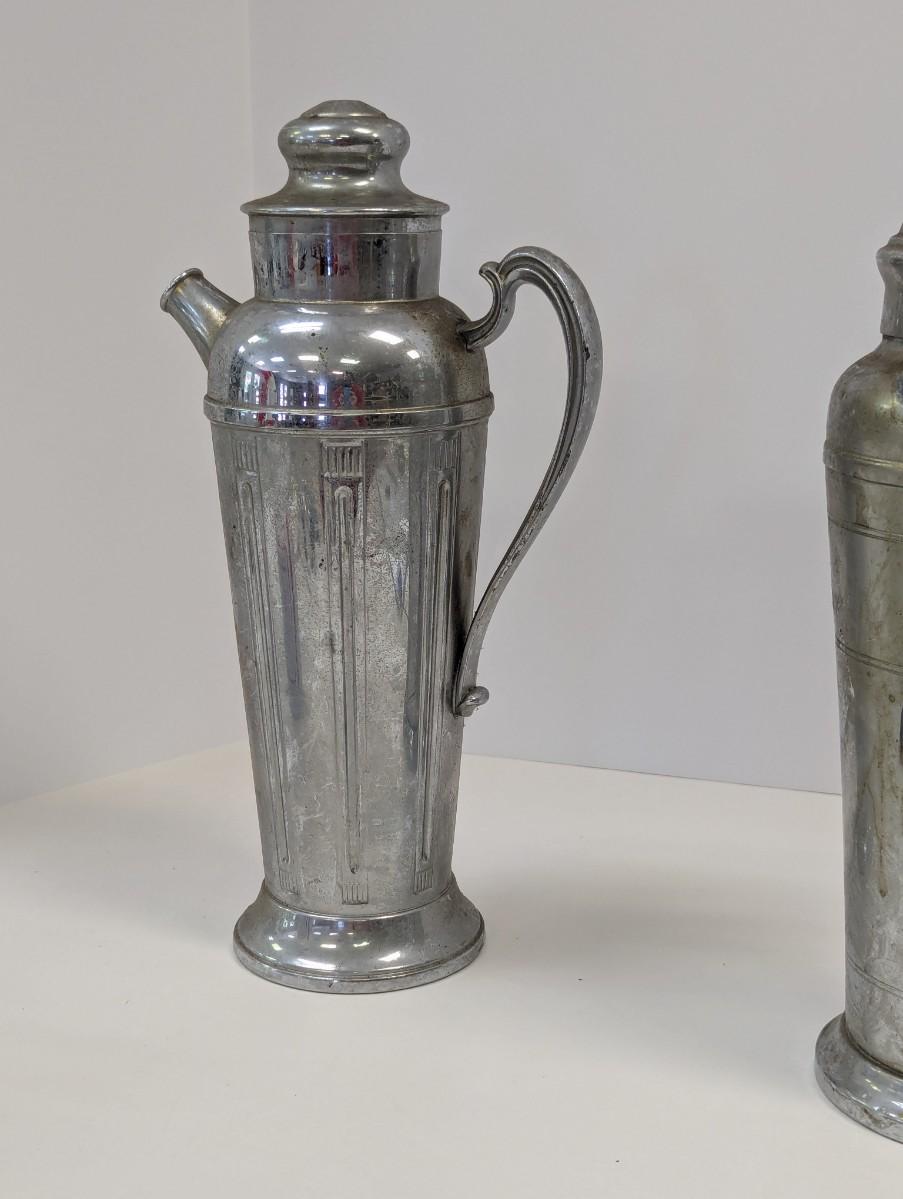 Vintage Chrome Plated Cocktail Pitcher Art Deco Style Farber ware Shakers ~ Approx 13" & A rt Deco 1930’s Stainless Shaker