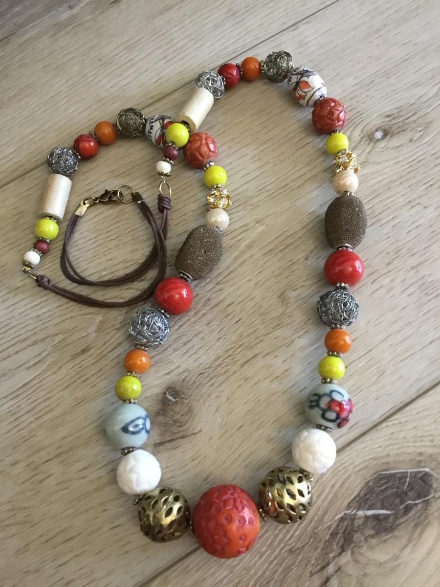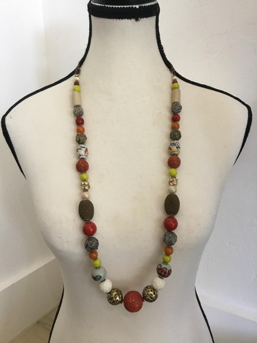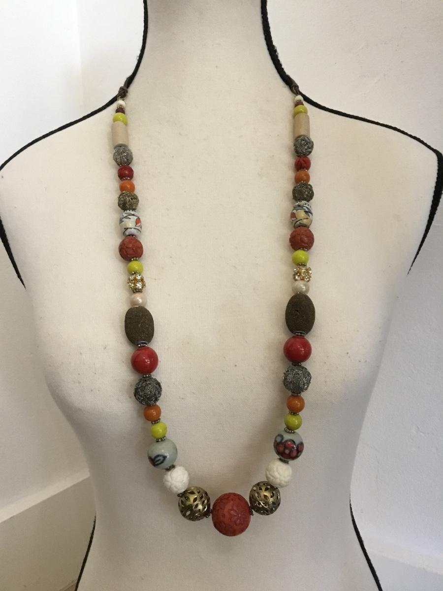 Vintage chunky ceramic, glass faux, coral stone bead statement, necklace