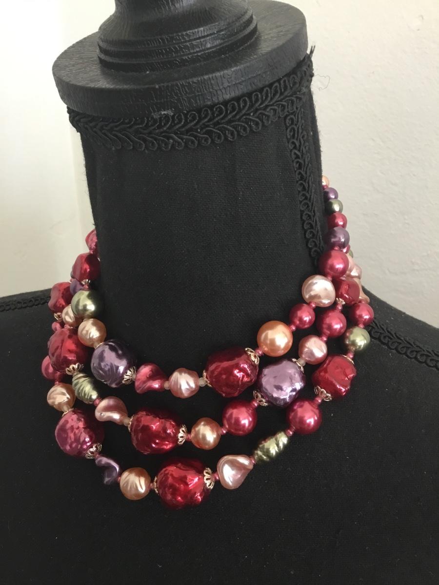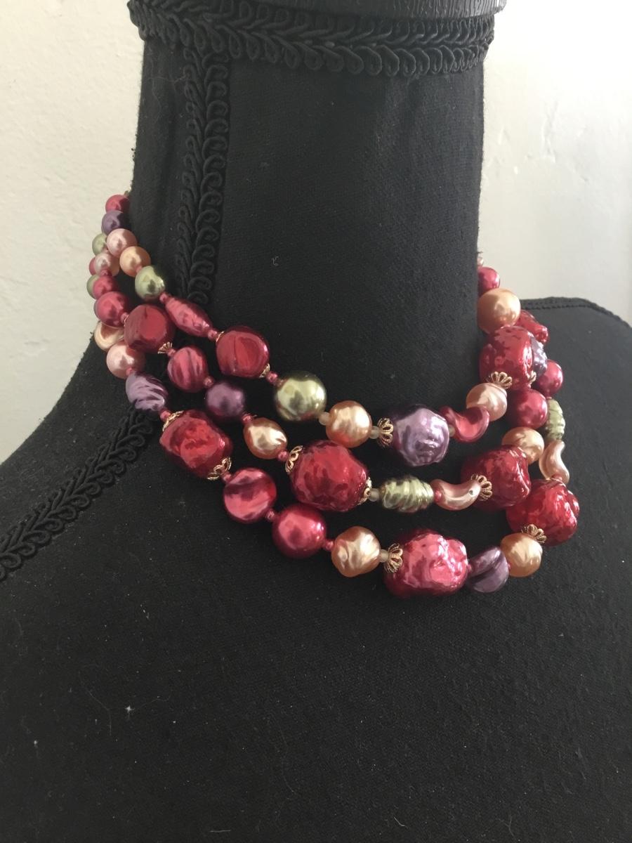 Vintage, chunky multicolor, beaded statement, necklace