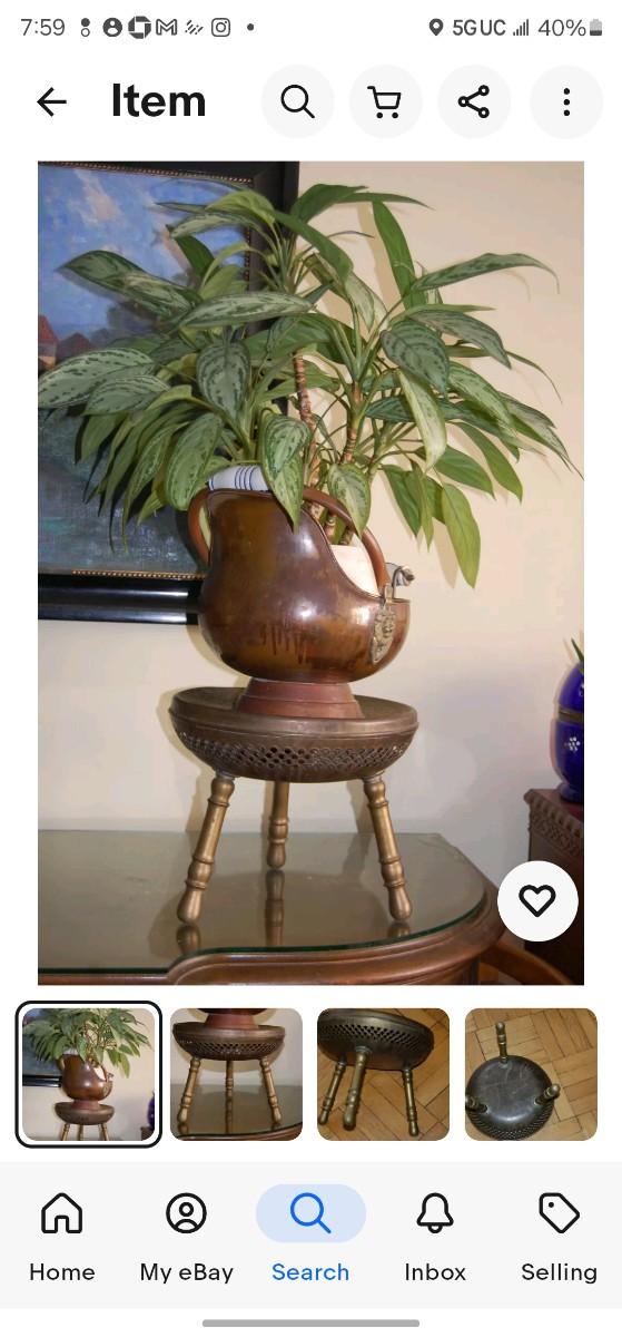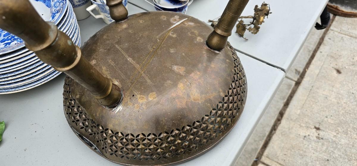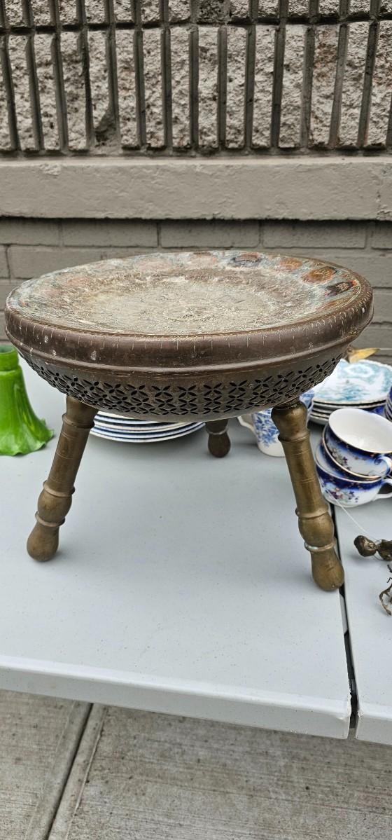 Vintage Brass stool 1950's 3 legs approx 14" diameter x 12" tall