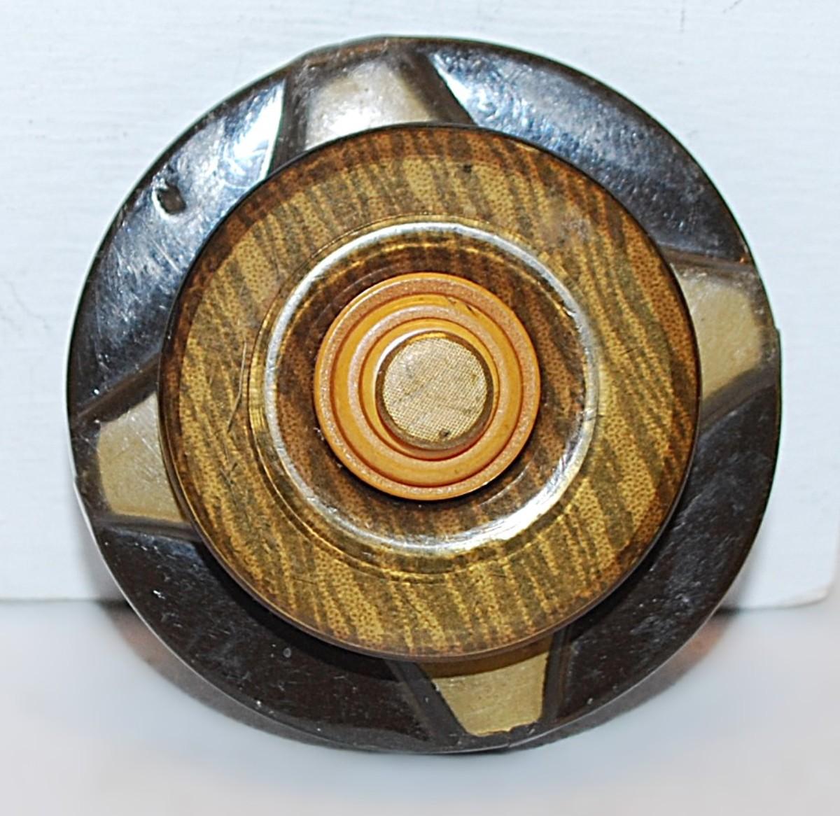 Vintage "CIRCLES of WOOD" BROOCH (2" Diam.) with Layers of Faux Wood