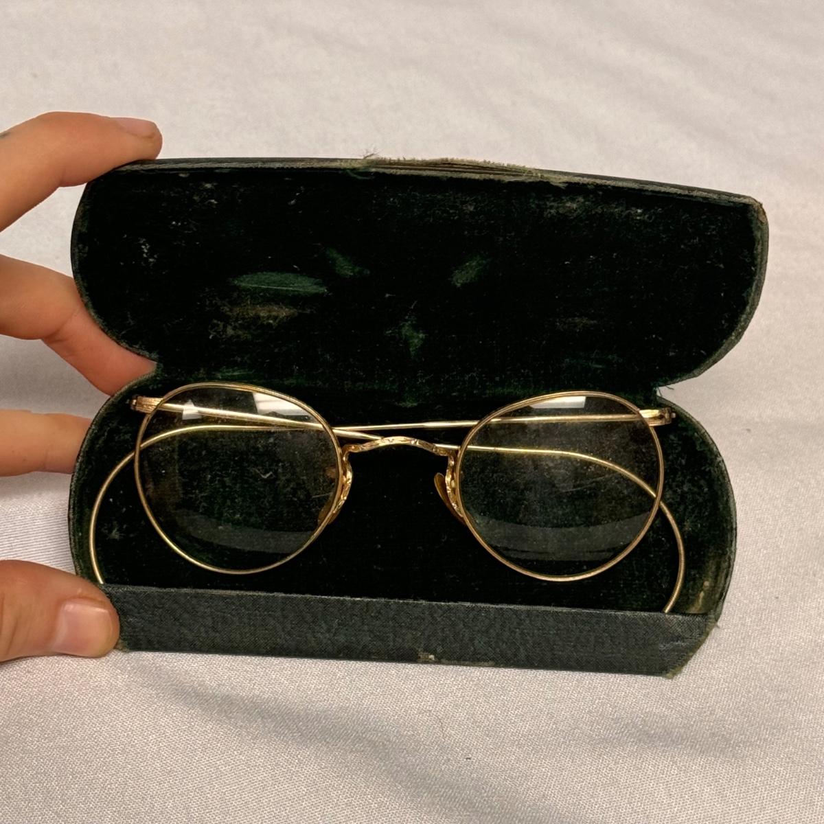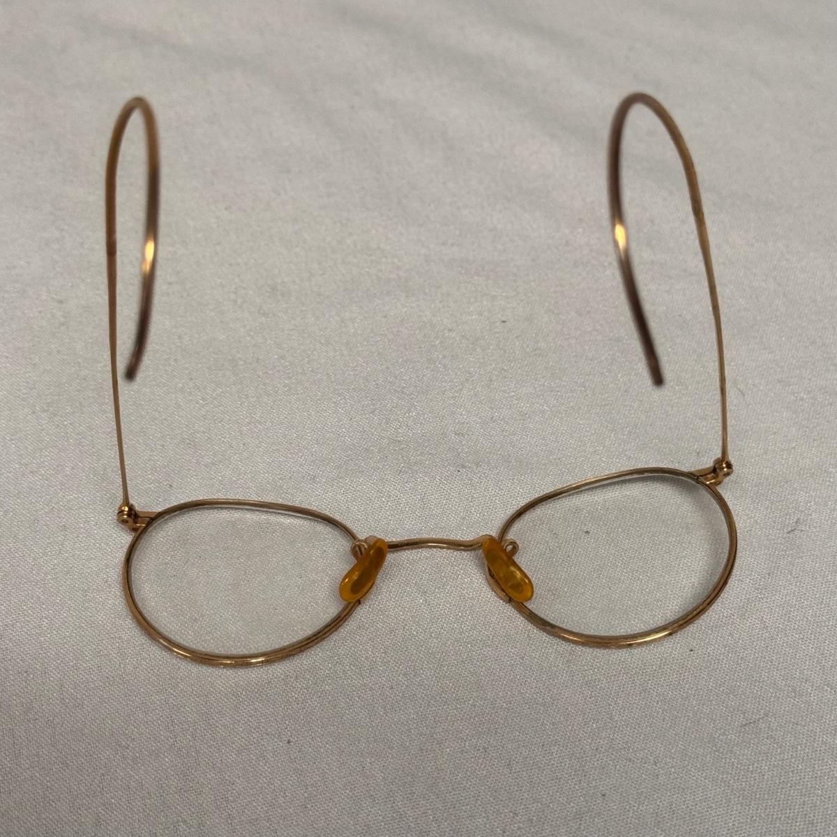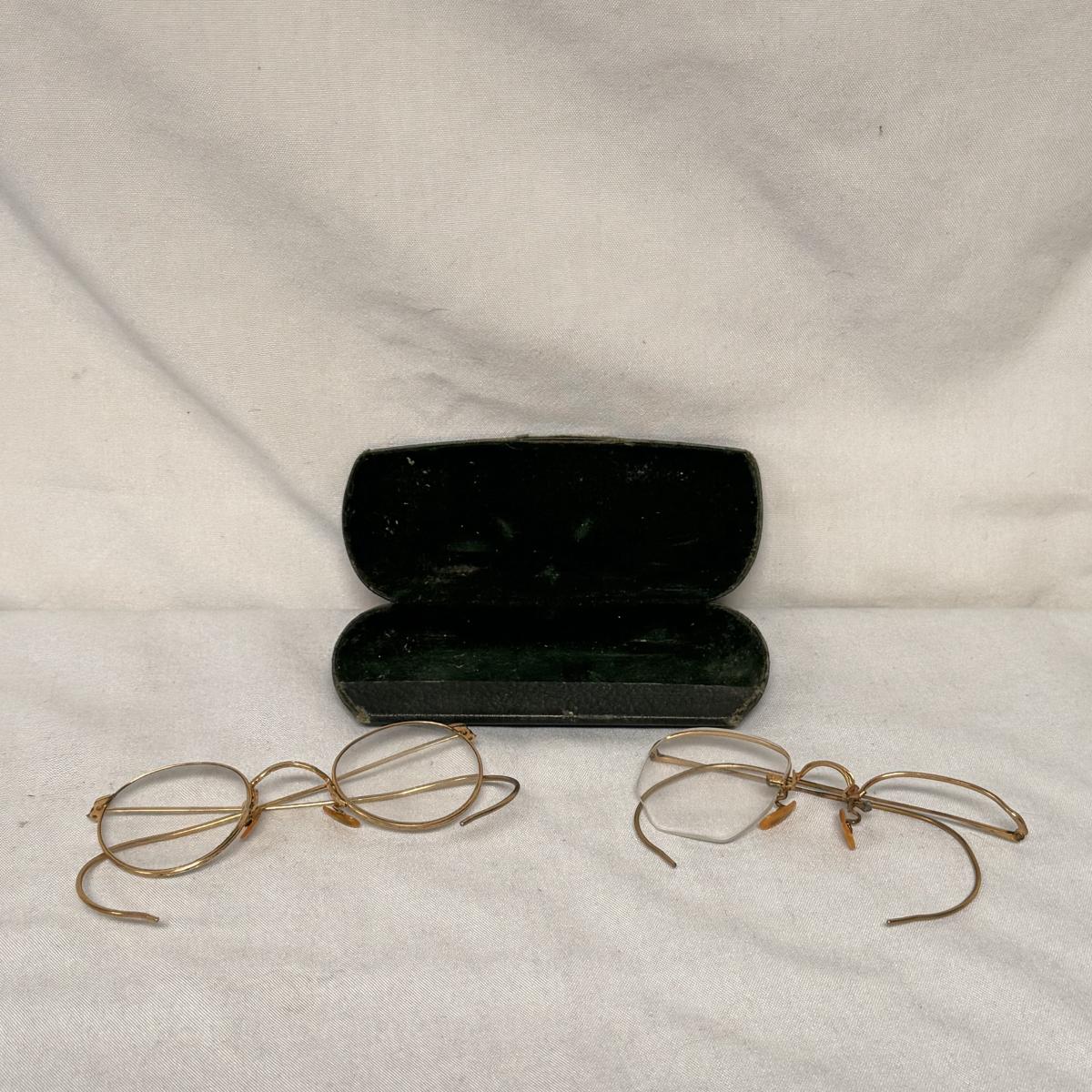This lot includes two pairs of gold colored glasses that appear to be vintage. Both pairs are stamped with 1/10 12K GF. The pair of glasses that are in its own case are missing one lens. Shipping available.