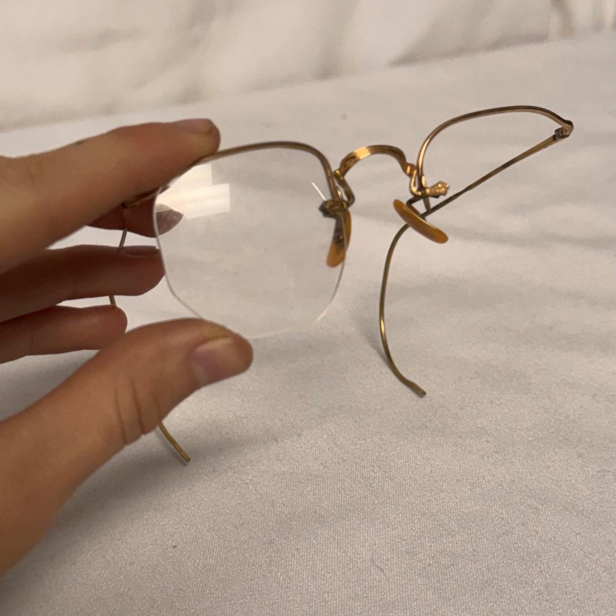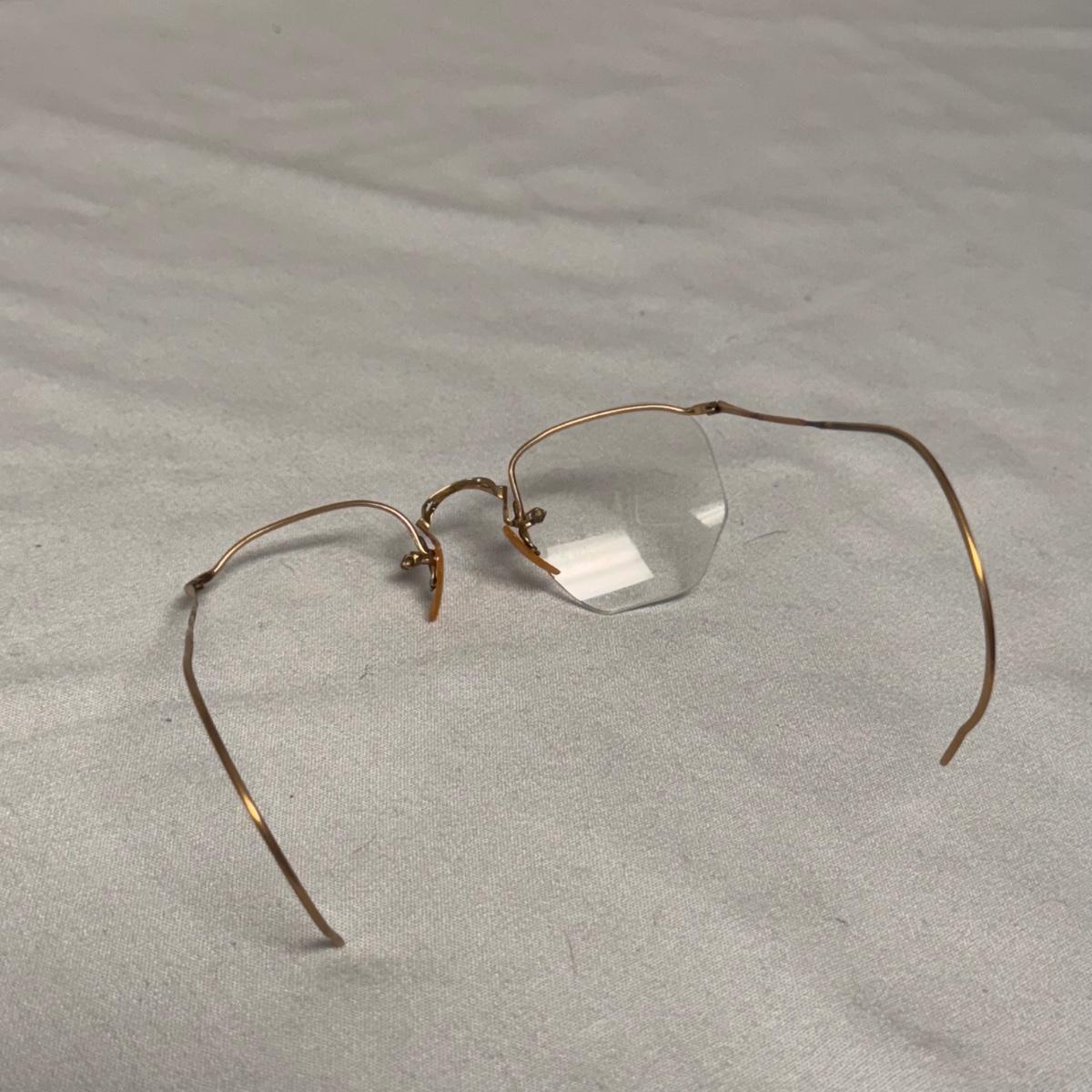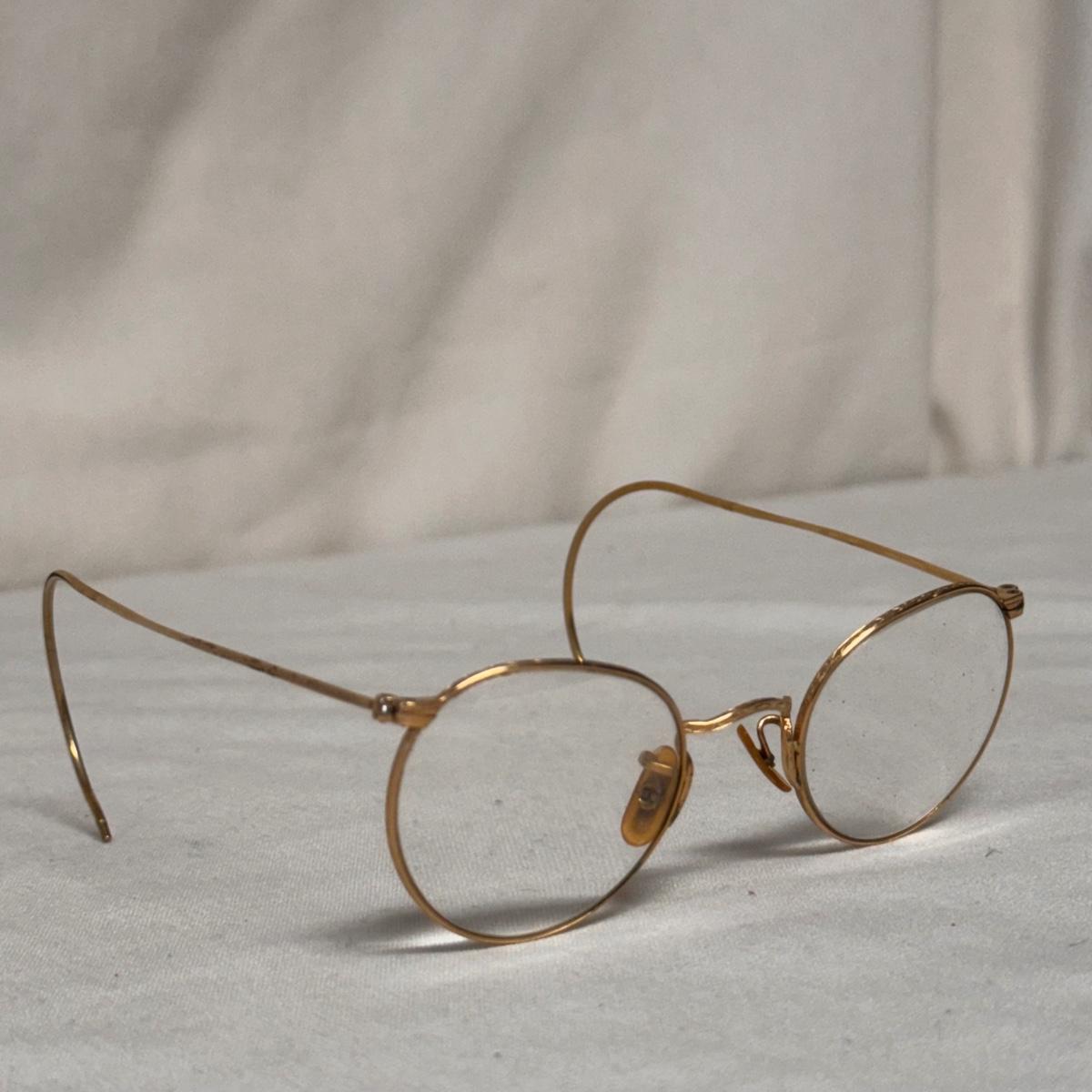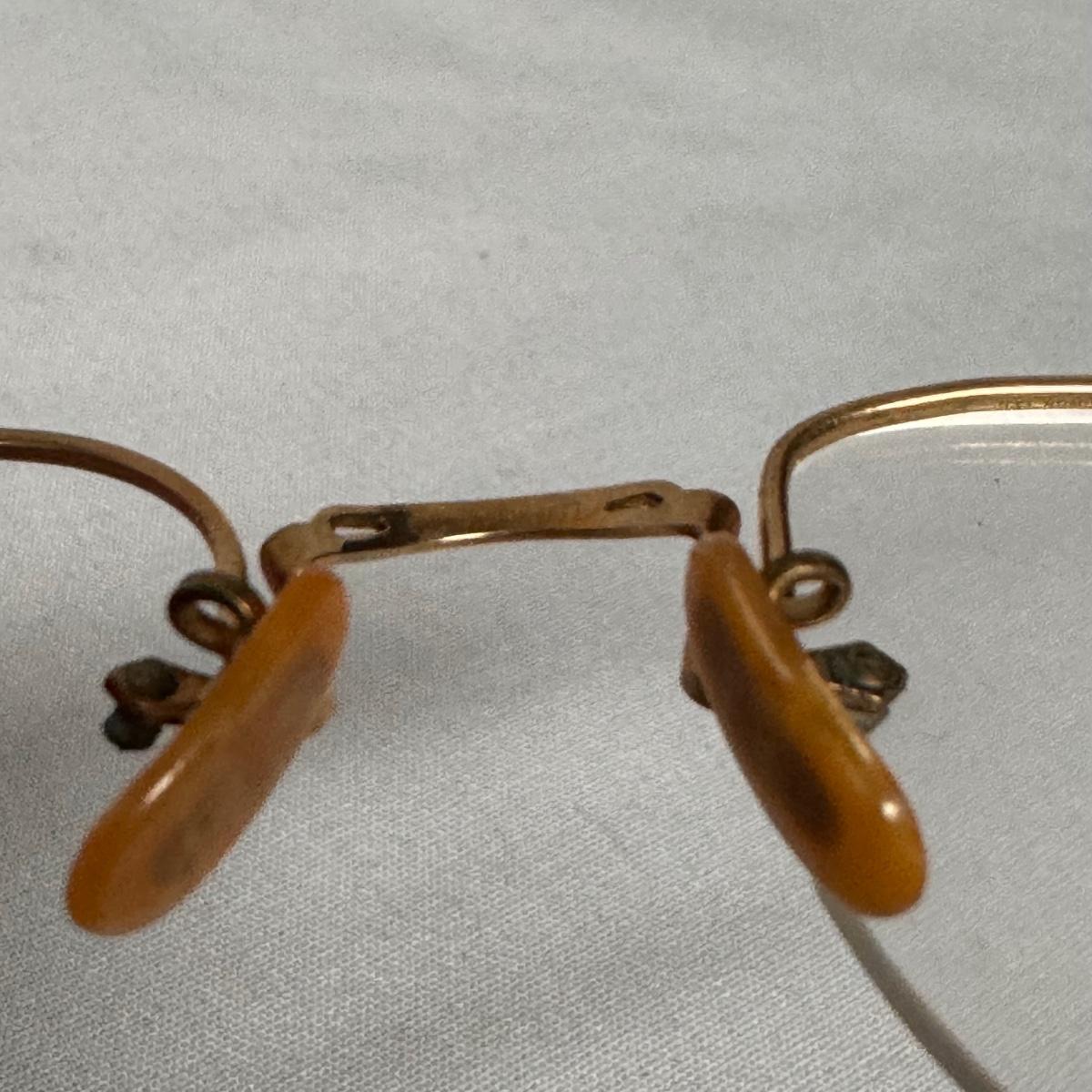This lot includes two pairs of gold colored glasses that appear to be vintage. Both pairs are stamped with 1/10 12K GF. The pair of glasses that are in its own case are missing one lens. Shipping available.