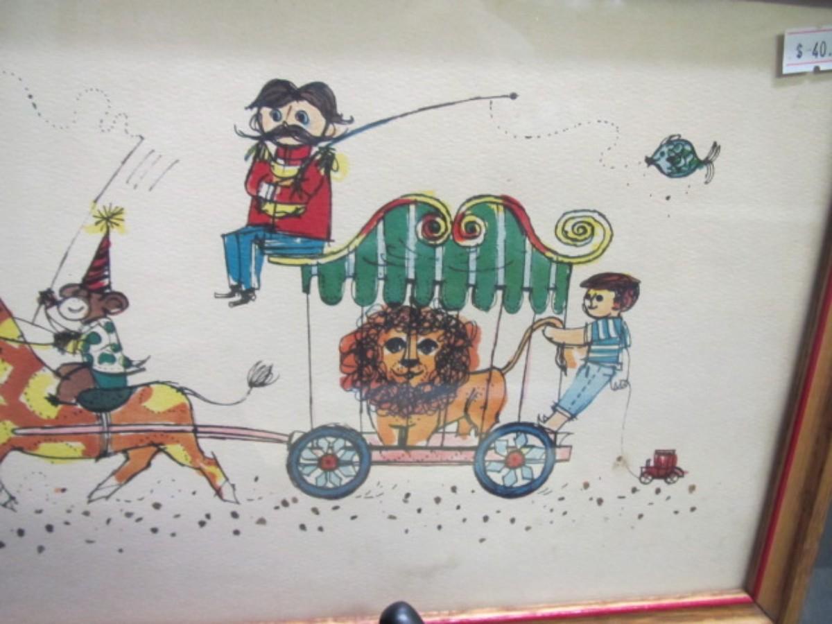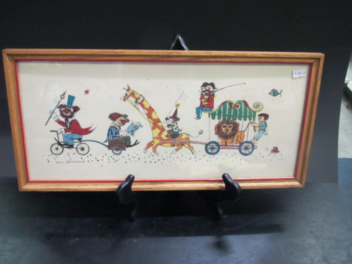 Vintage Circus Art By Denis Allemand Framed 19" x 9"