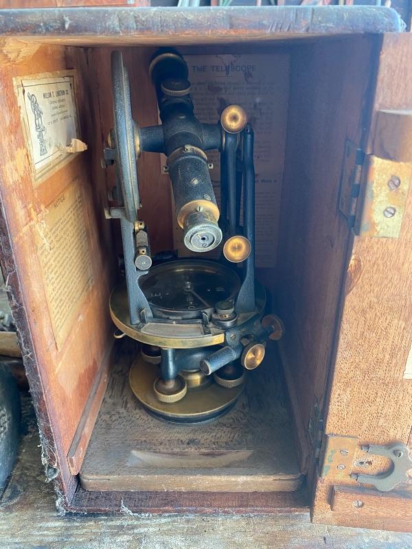 Vintage CL Berger & Sons Surveying Sight with Wood Case and Tri Pod Stand