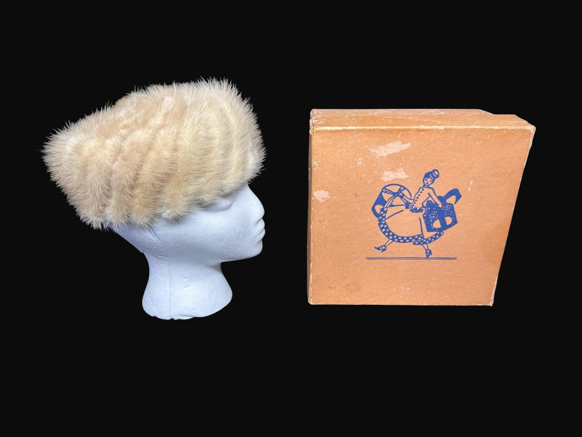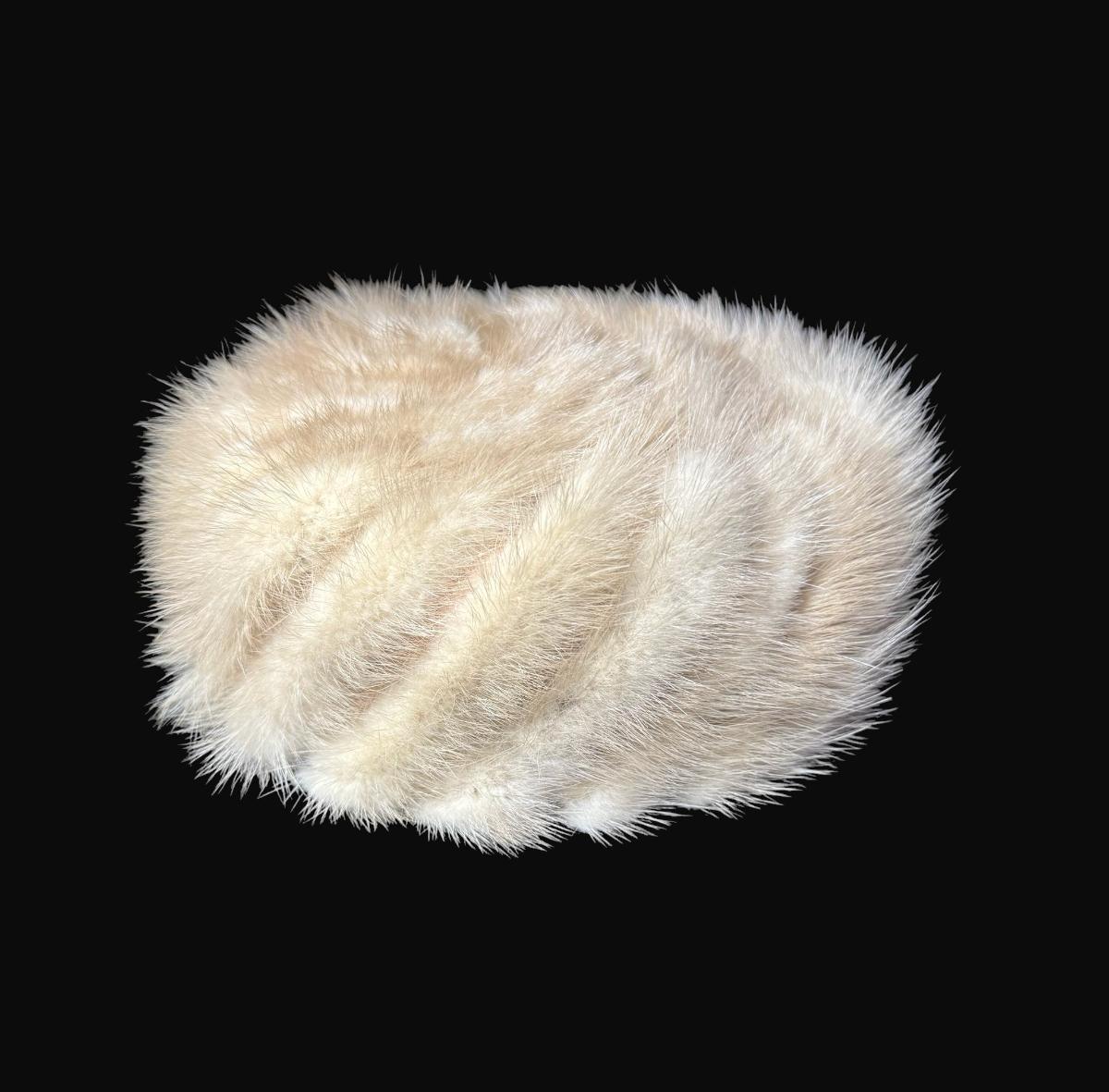 Vintage Adele Claire White Mink Pillbox Hat