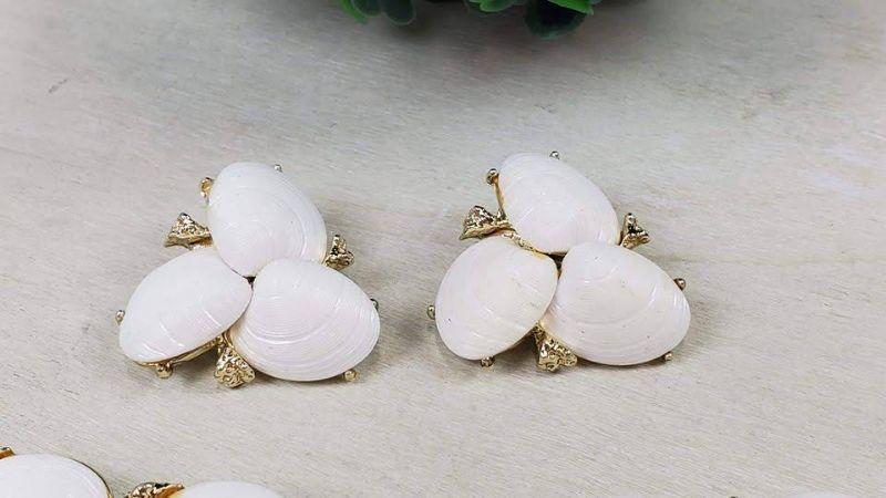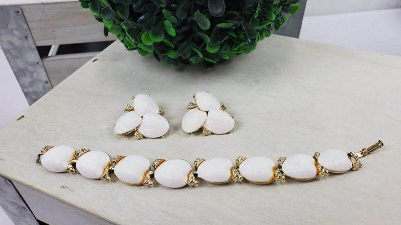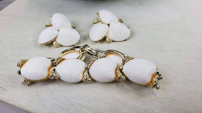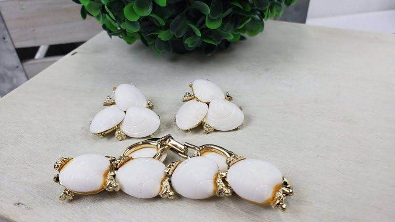 Vintage Clamshell Set, Bracelet & Clip on Earrings