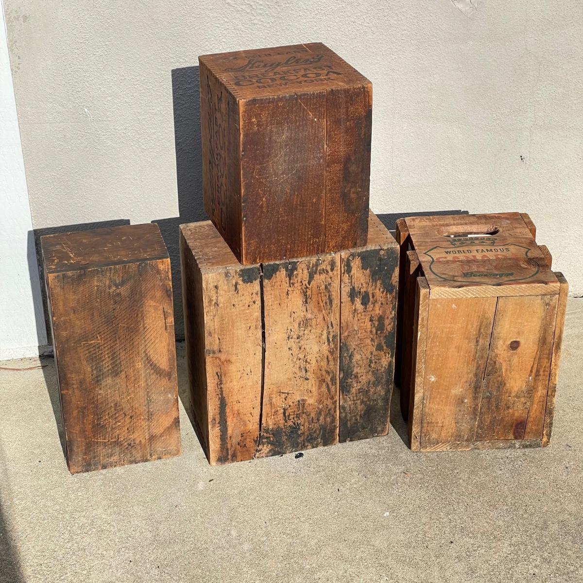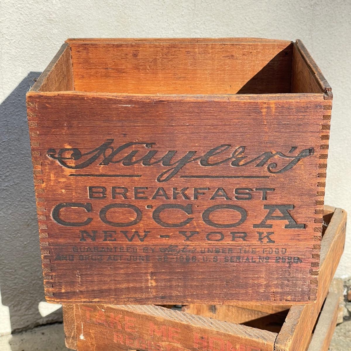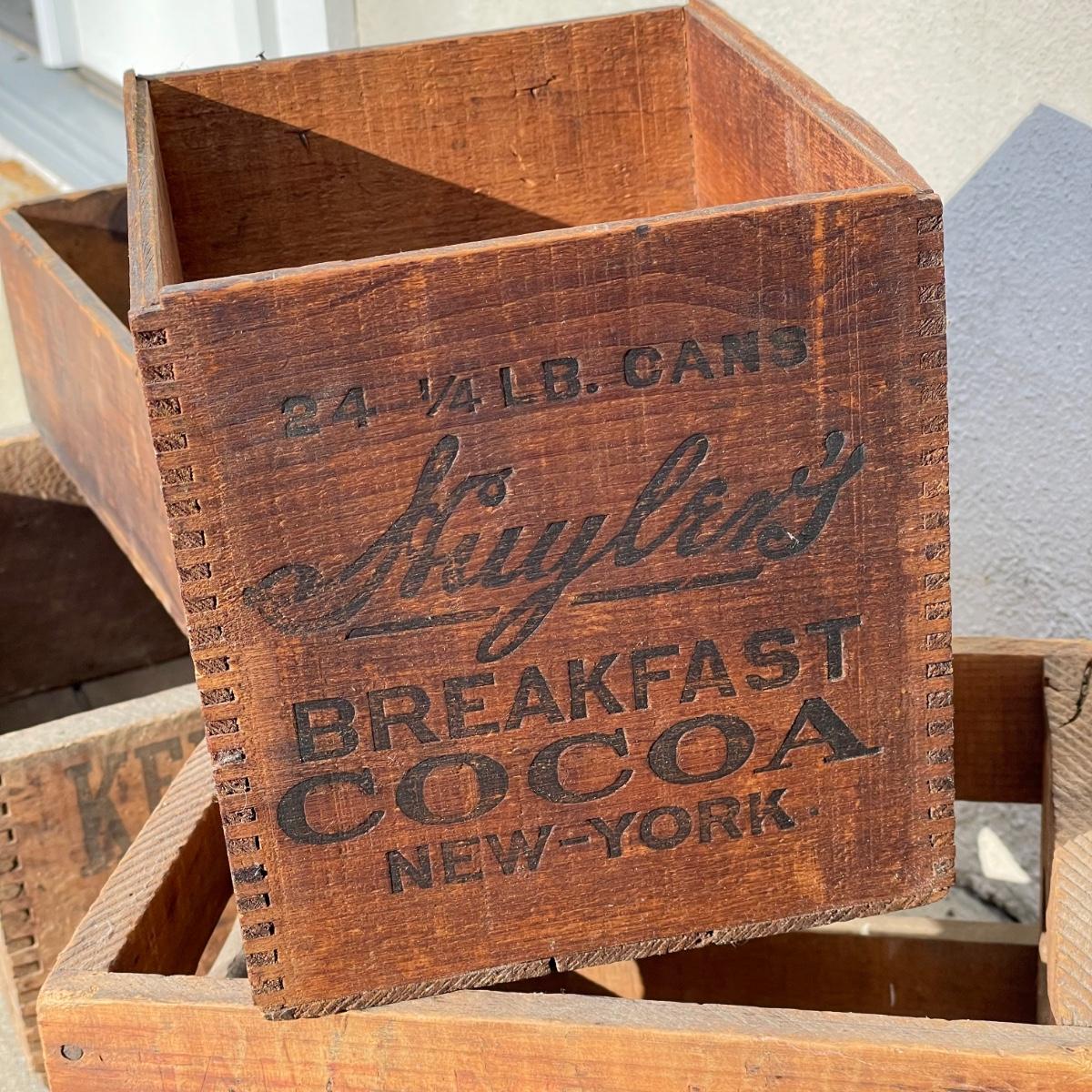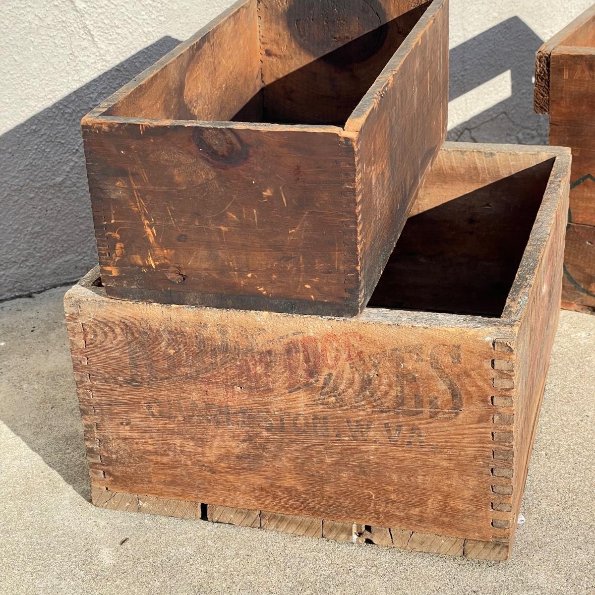 Three Dovetail wooden crates featuring Huyler’s Breakfast Cocoa, Kelly Flint Edge Axes, and India Mills Black Pepper. Lot also features the World Famous Canada Dry crate with handles. The largest crate is the Kelly Axe Mfg, measuring 12.5” x 11” x 6”. See images. Shipping available.