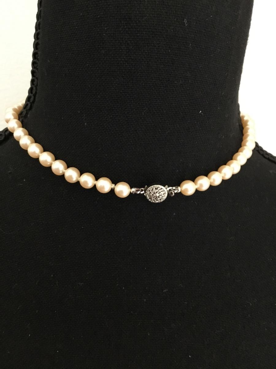 Vintage classic organic pearl necklace with silver tone beautiful clasp