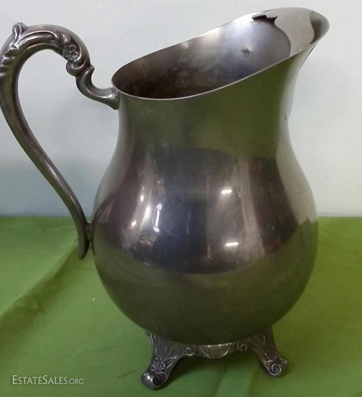 Vintage claw foot silver water pitcher with ice catcher, by F B Rogers