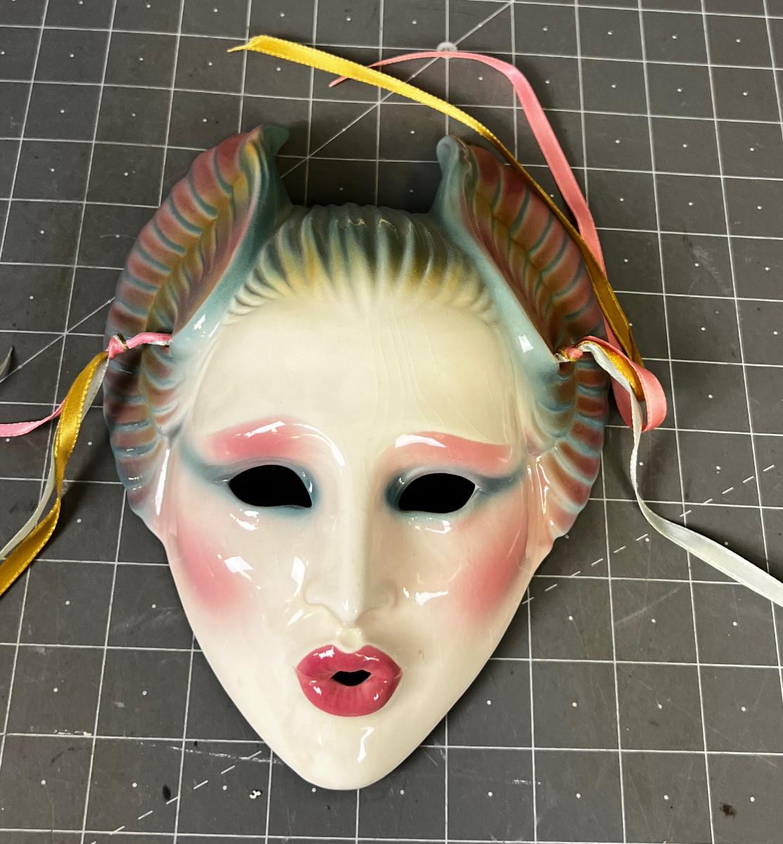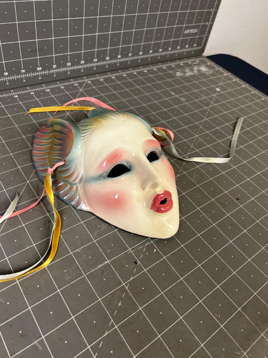 Vintage Clay ART Ceramic Mask Turquoise Mauve Color