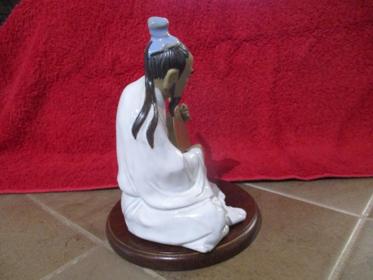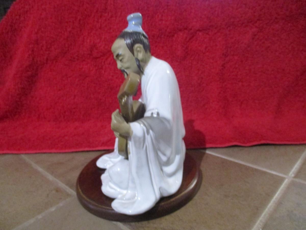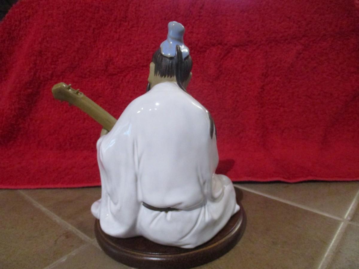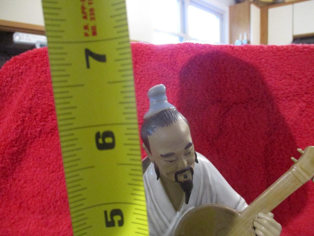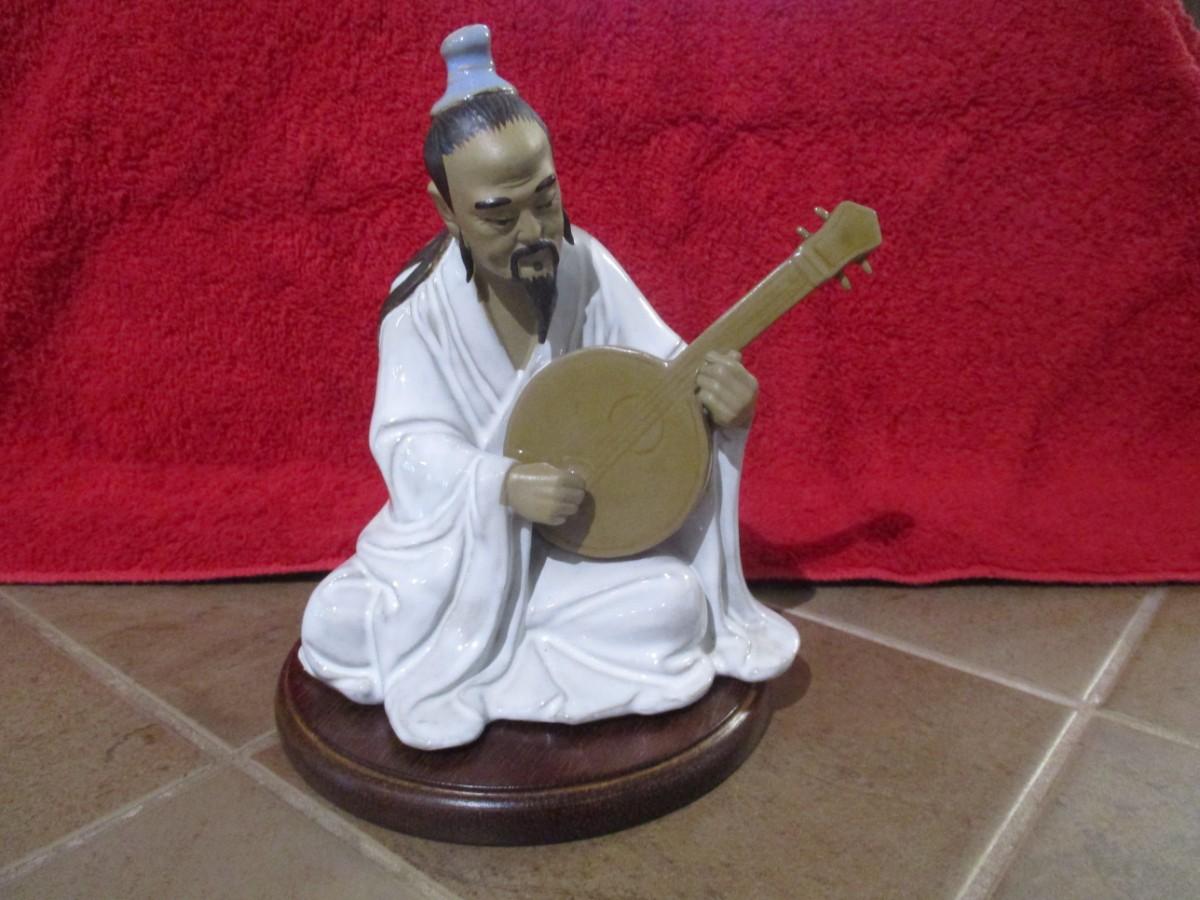 Vintage Clay Figurine Wan Jiang Old Folk Playing The Liuqin - D