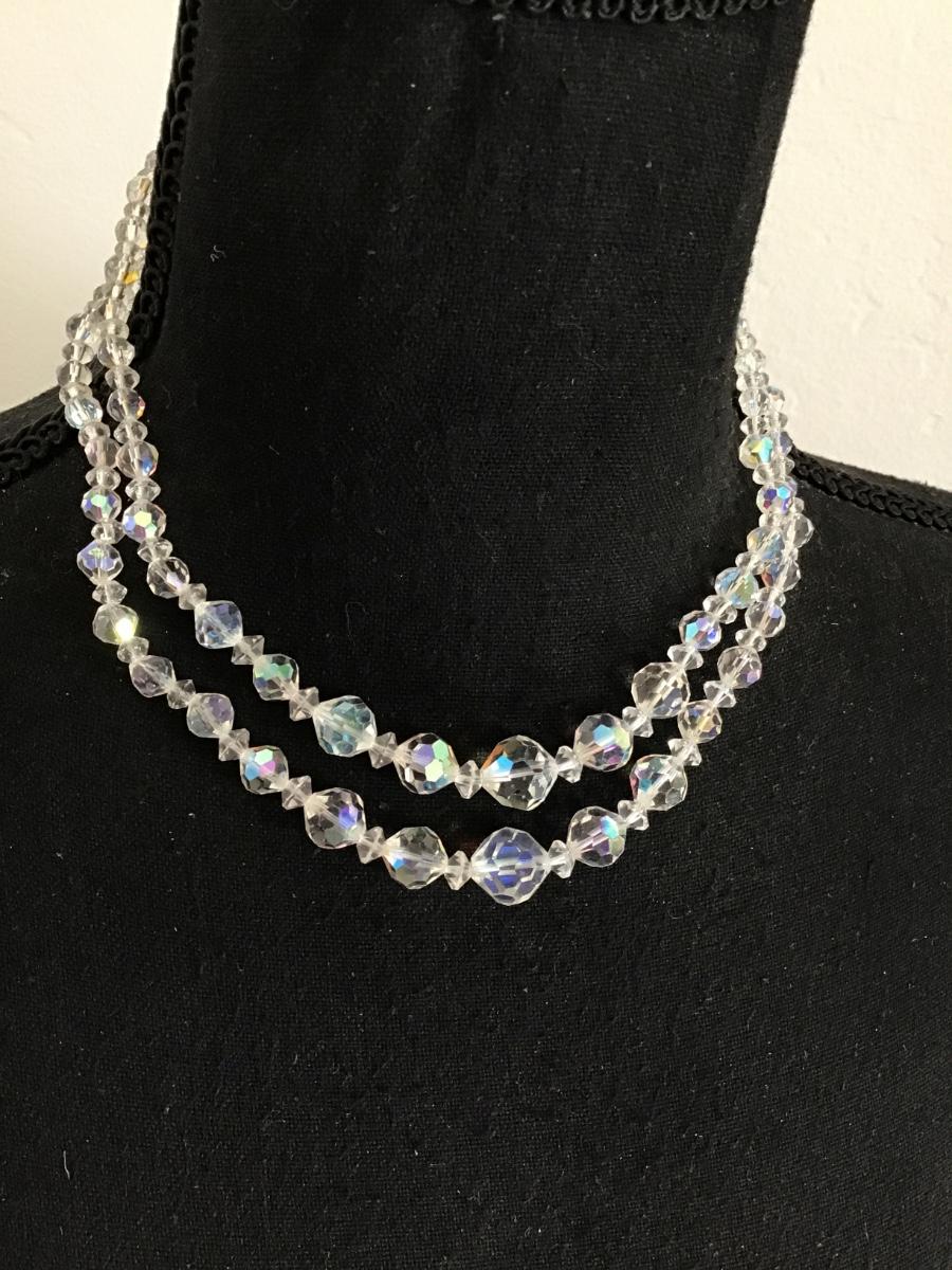Vintage Clear Aurora Borealis Crystal Necklace