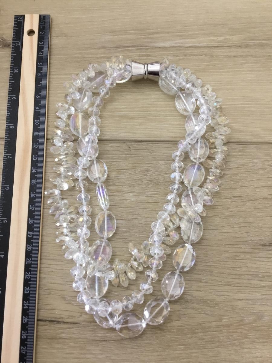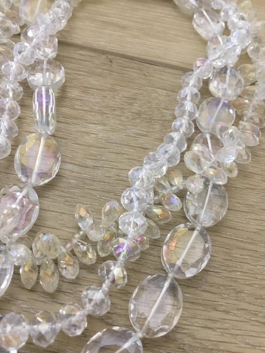 Vintage clear Aurora Borealis three strand glass beads and crystals Necklace.