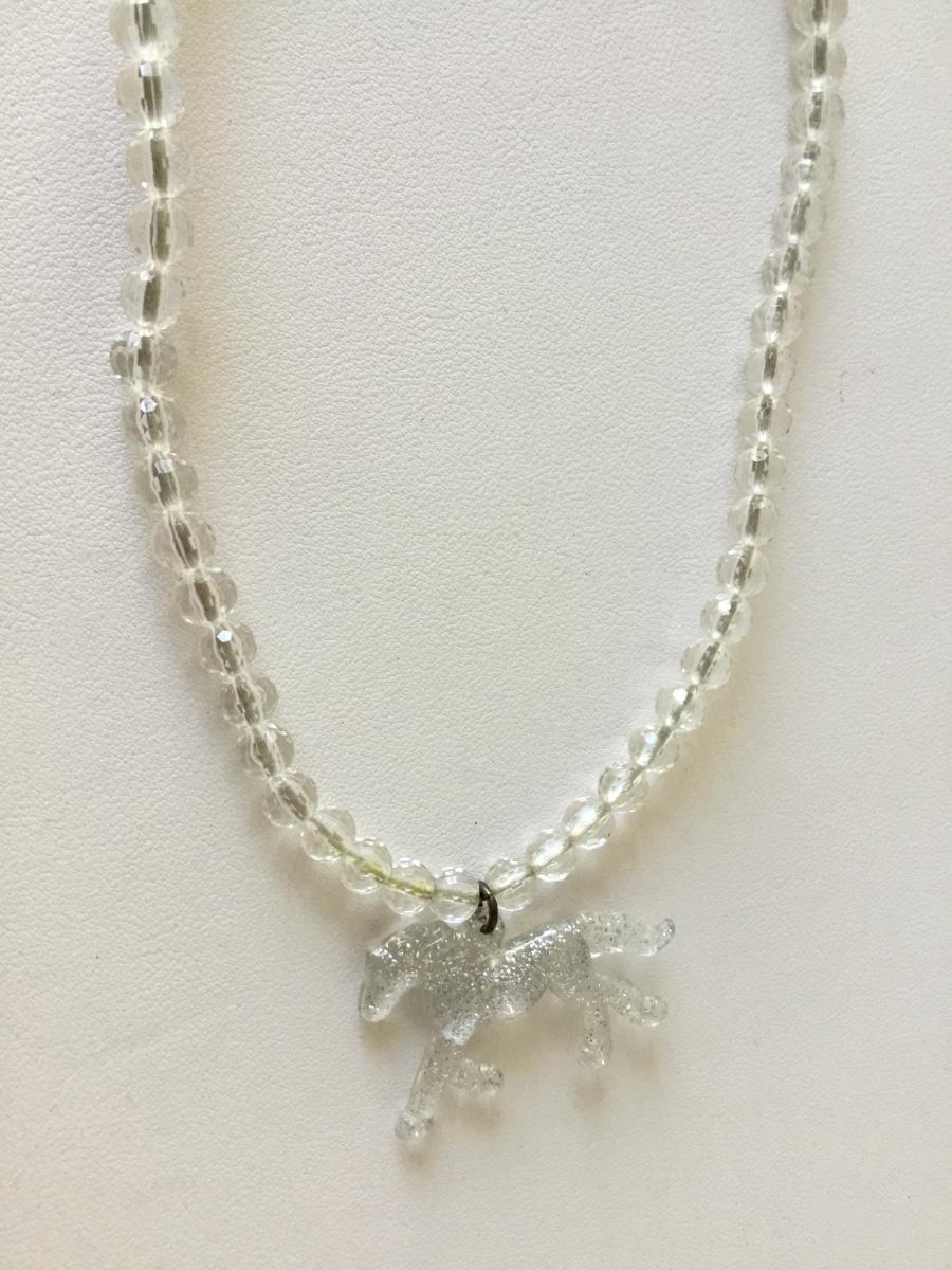 Vintage clear beaded unicorn collar necklace