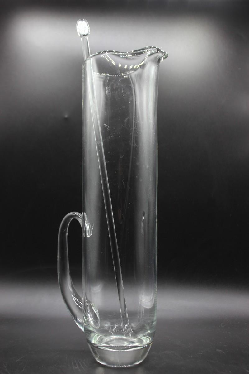 Vintage Clear Blown Glass Iced Tea Pitcher with Stir Stick