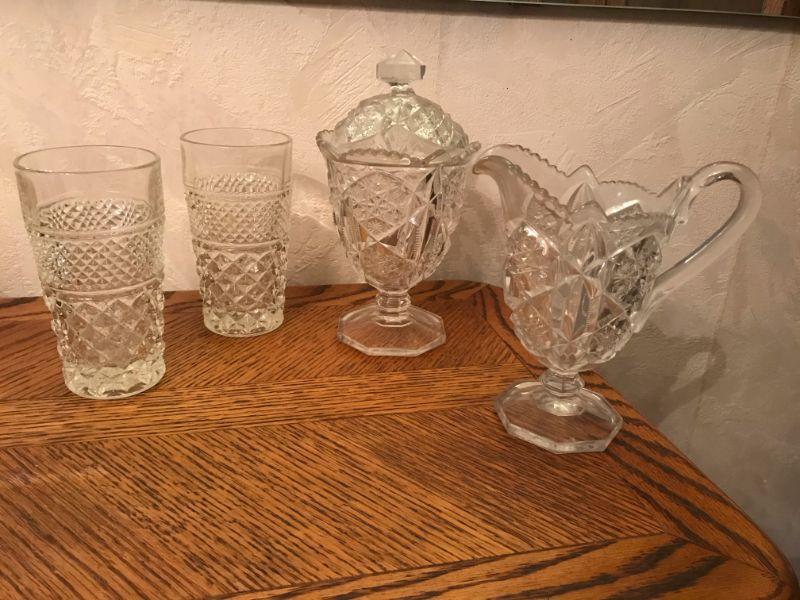 Vintage Clear Cut Crystal Glass - Tumblers Sugar Creamer (90)