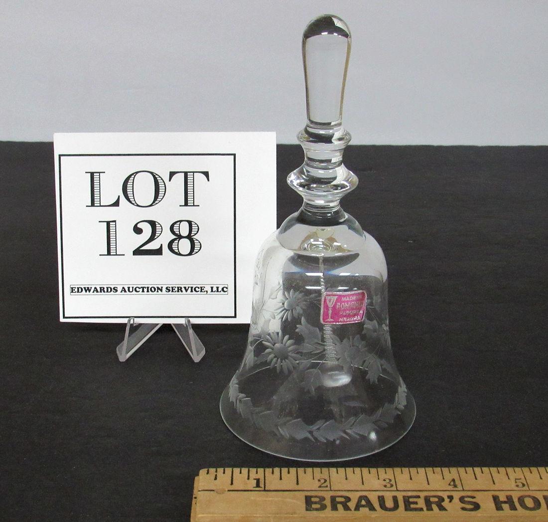 Vintage Clear Cut Glass Bell, Floral Pattern, Made in Romania
