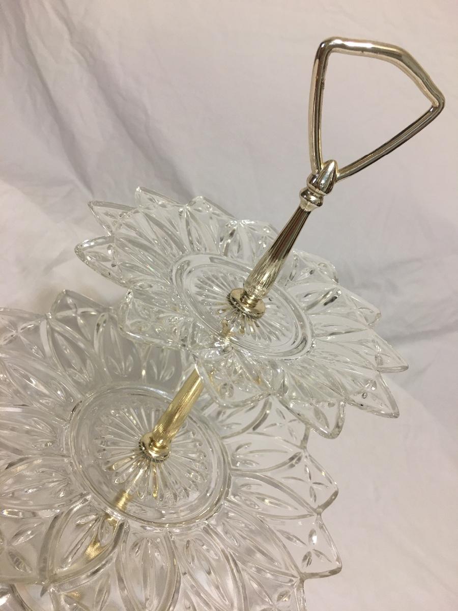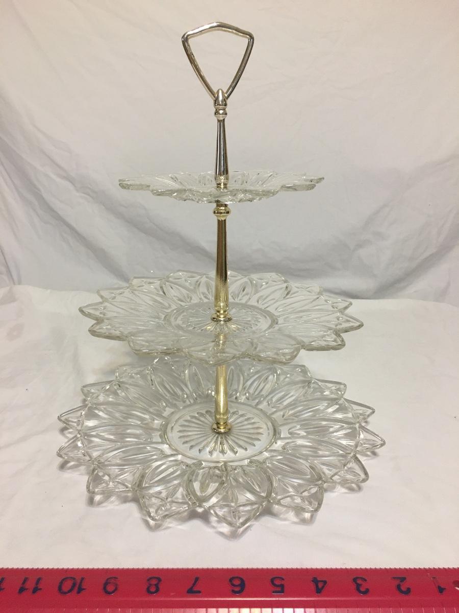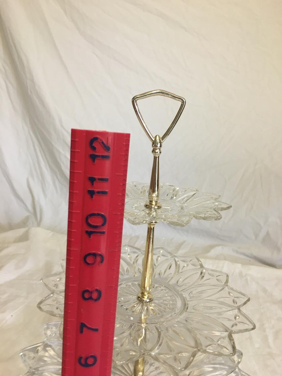 🥰Vintage Clear Cut Glass Crystal 3 Tier Serving Dish Stand Cookie Candy