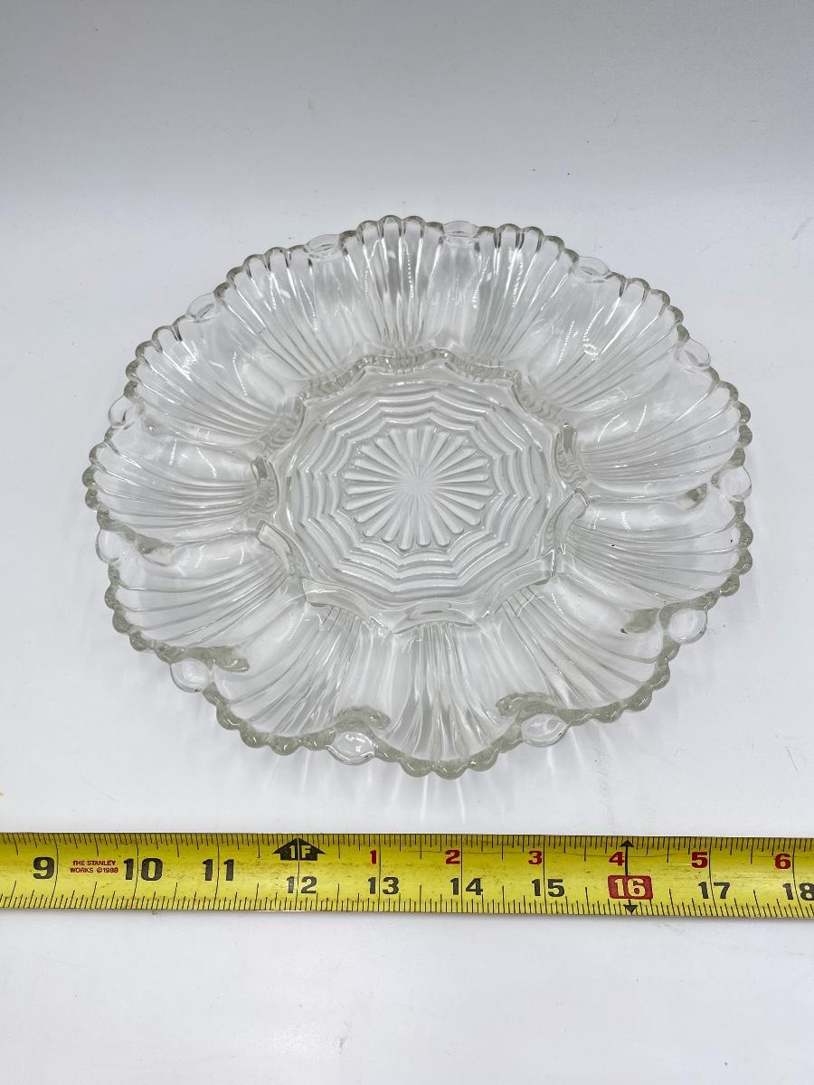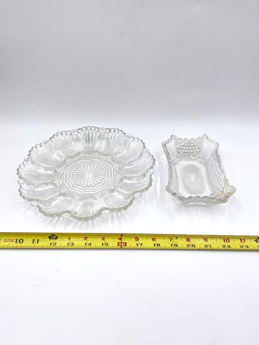 VINTAGE CLEAR CUT GLASS EGG PLATE AND SMALL DISH