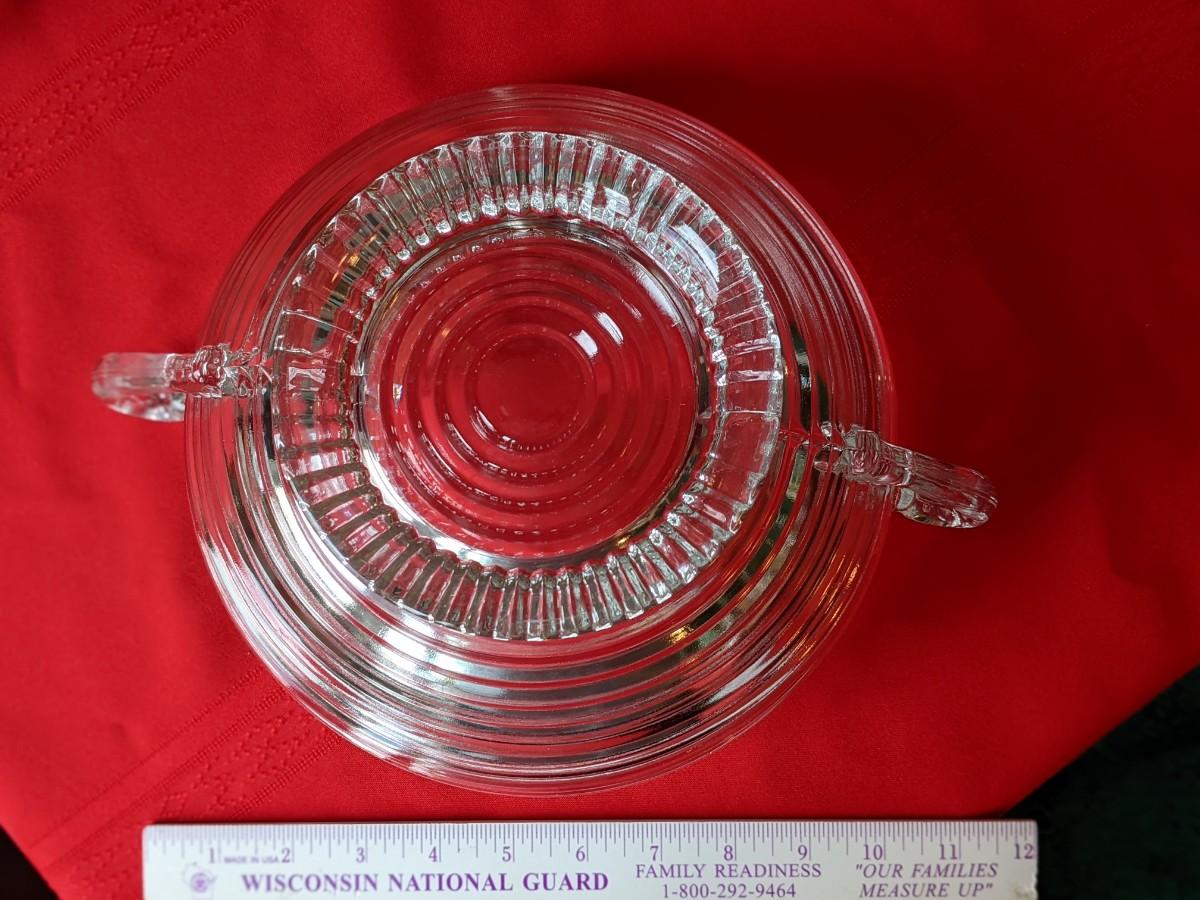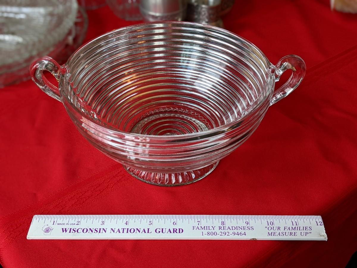Vintage Clear Depression Glass Serving Bowl with Handles and Horizontal Ribs
