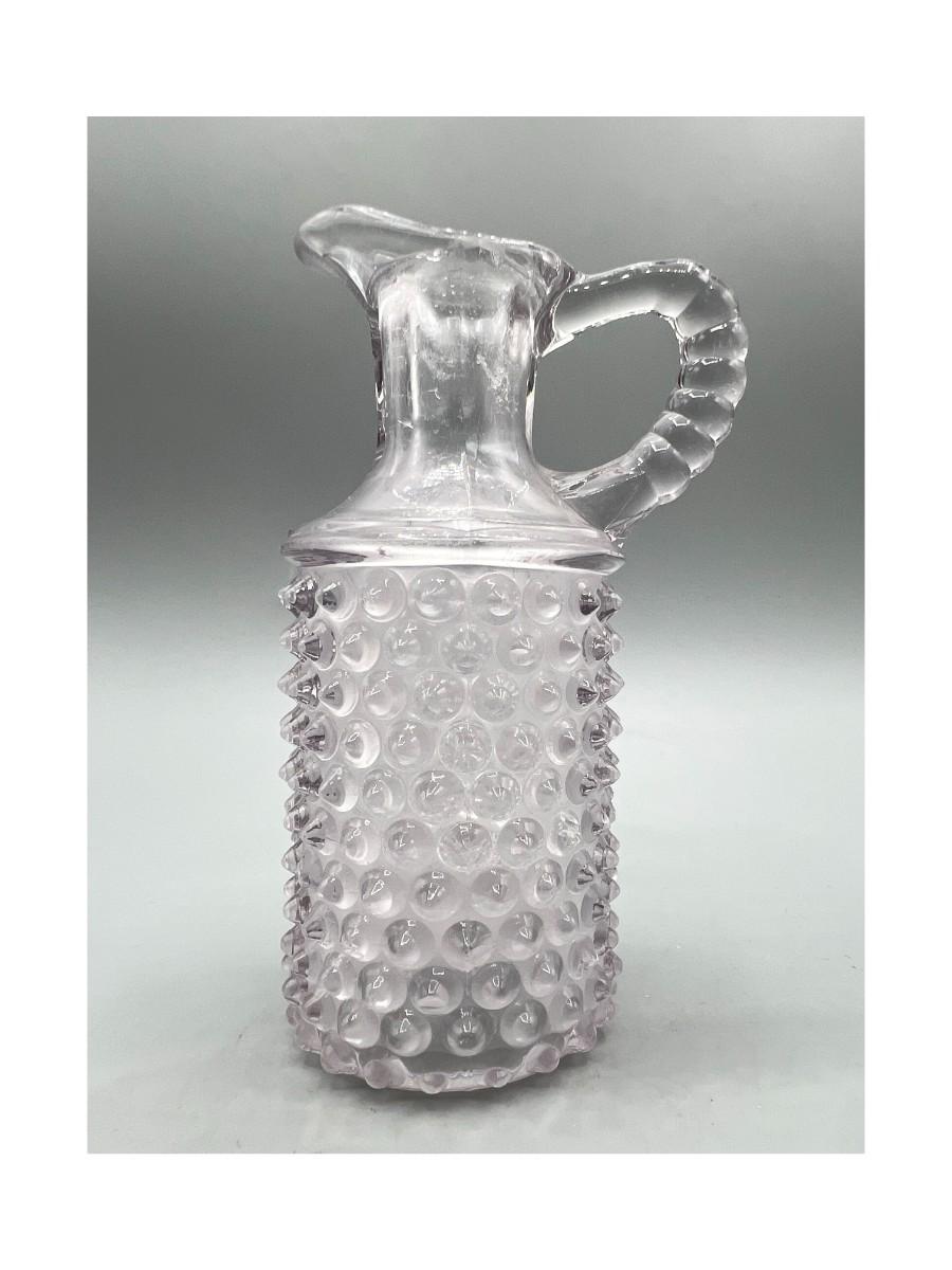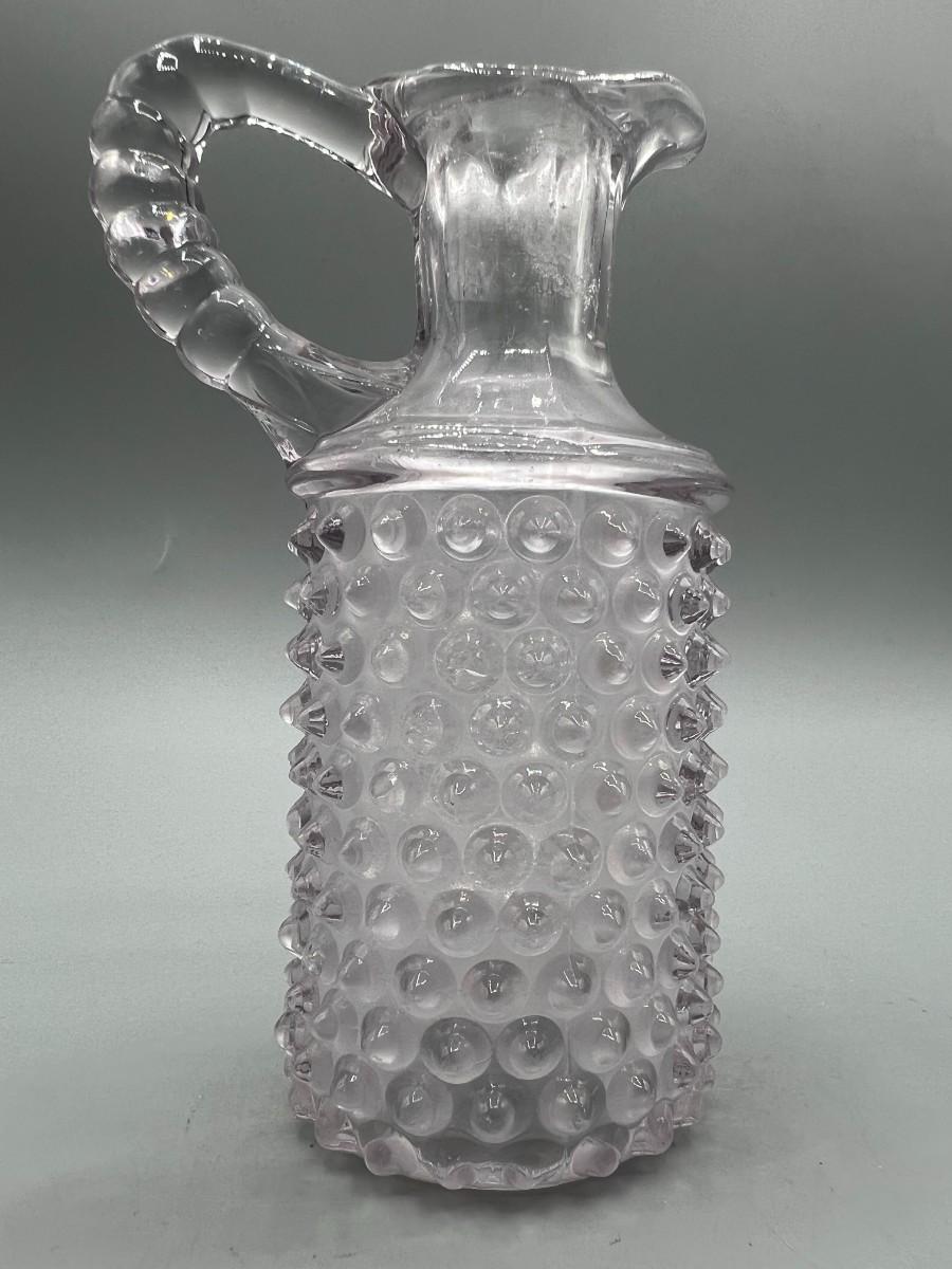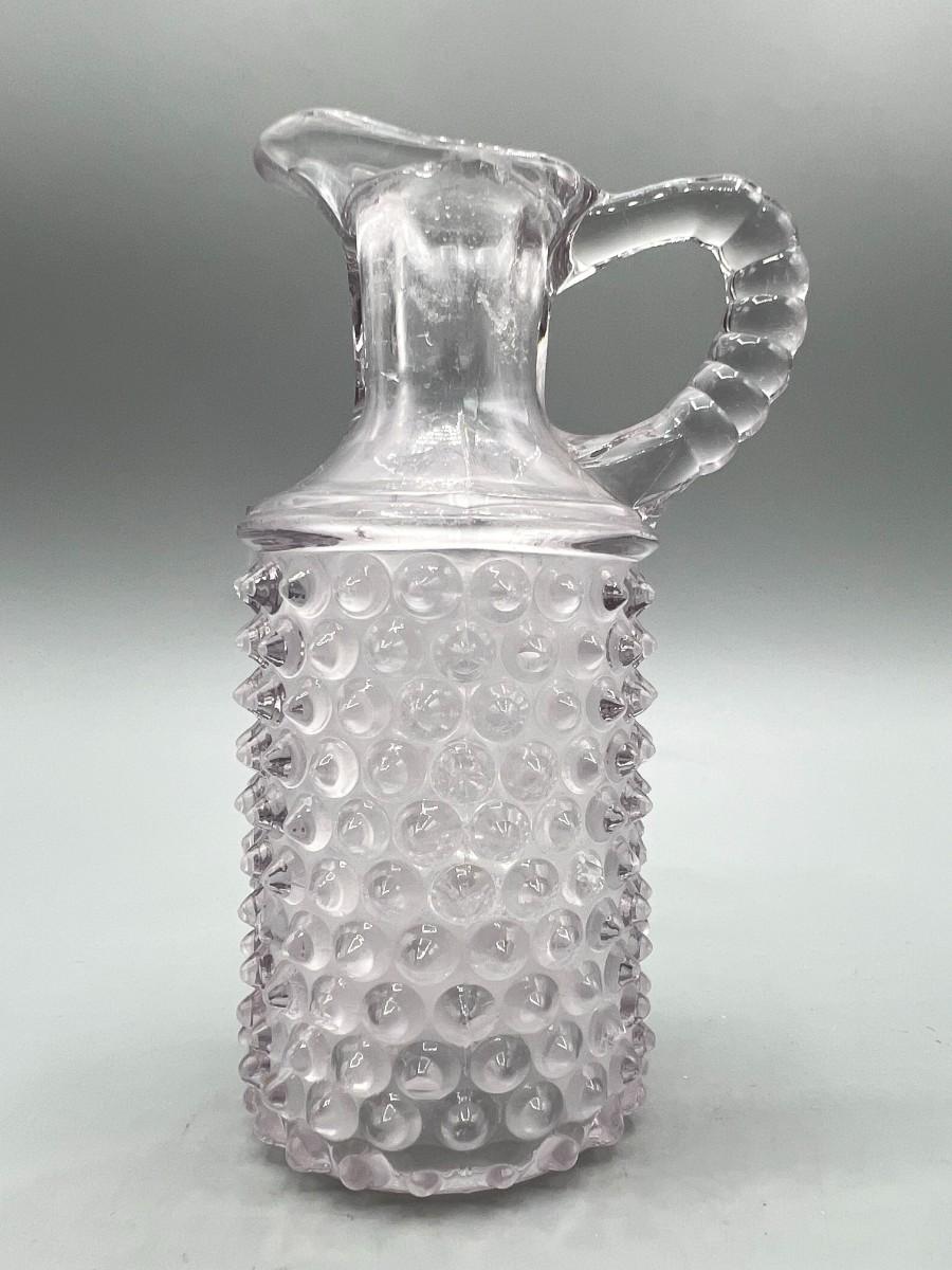 Vintage Clear Glass Light Purple Cylinder Hobnail Oil Ingredient Cruet Bottle