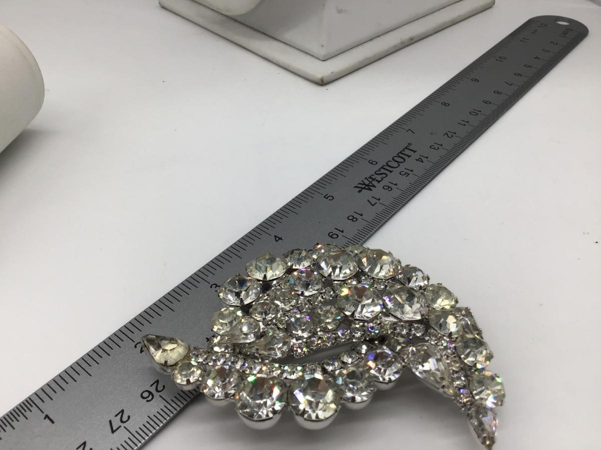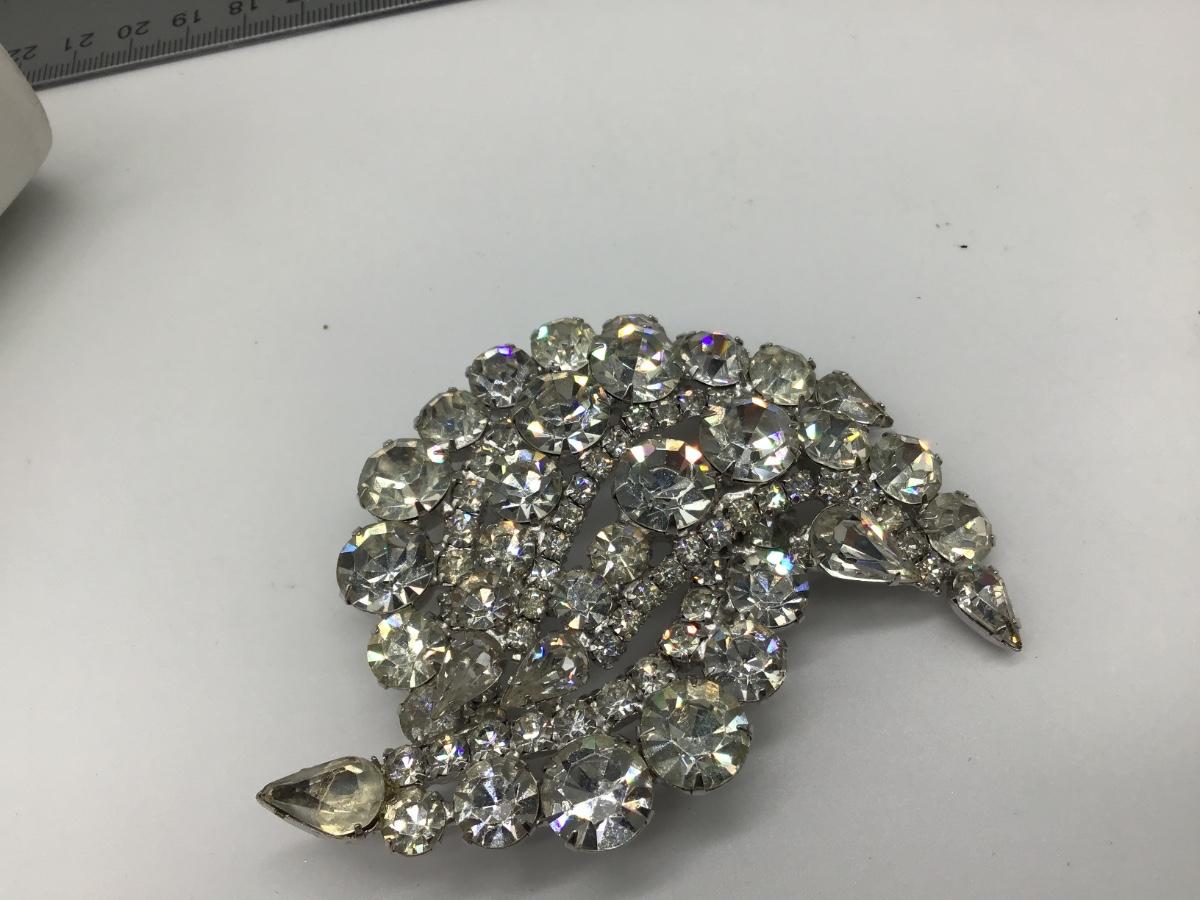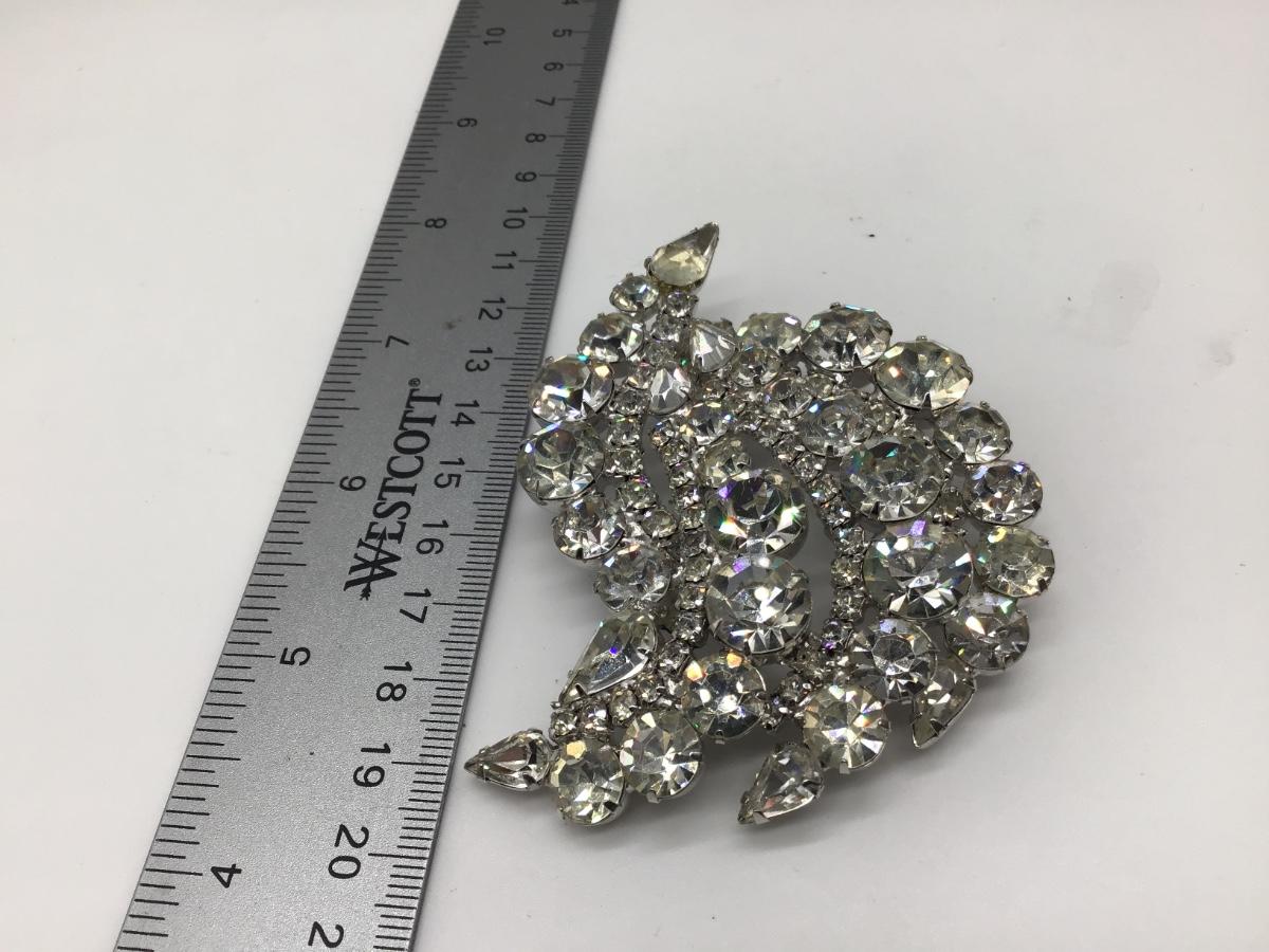 Vintage Clear Glass Rhinestone Pin Brooch Oversized Prong Set
