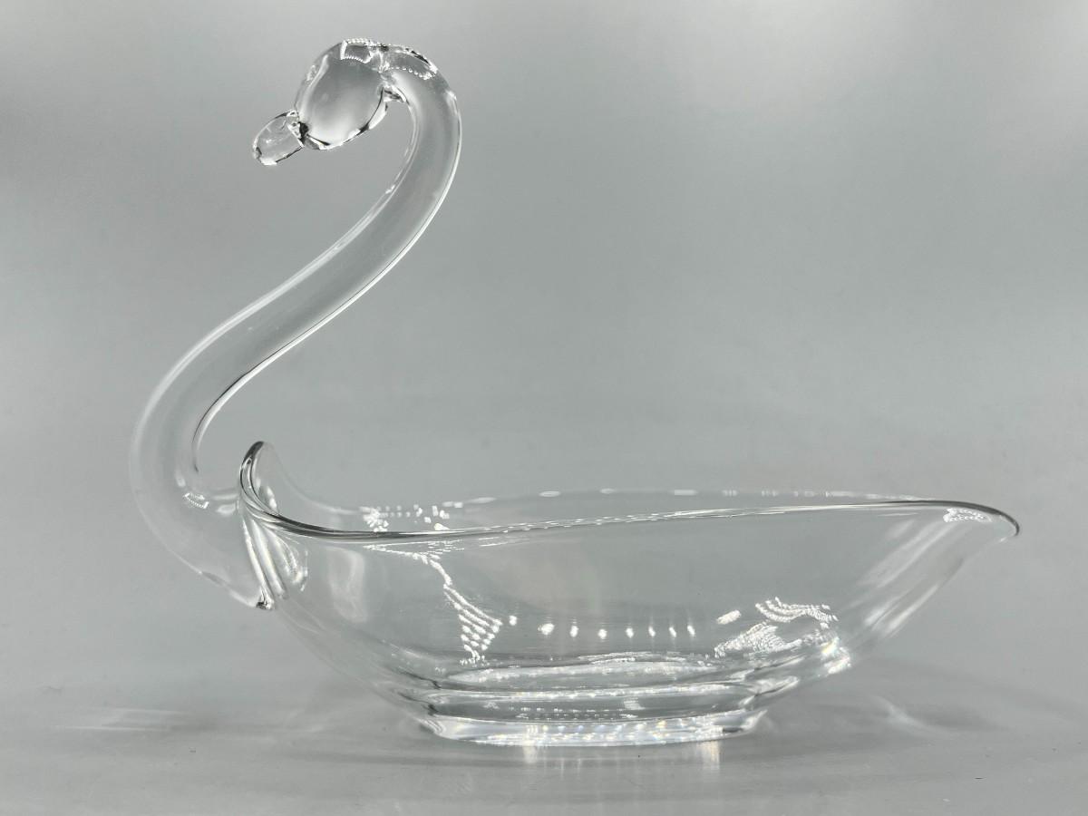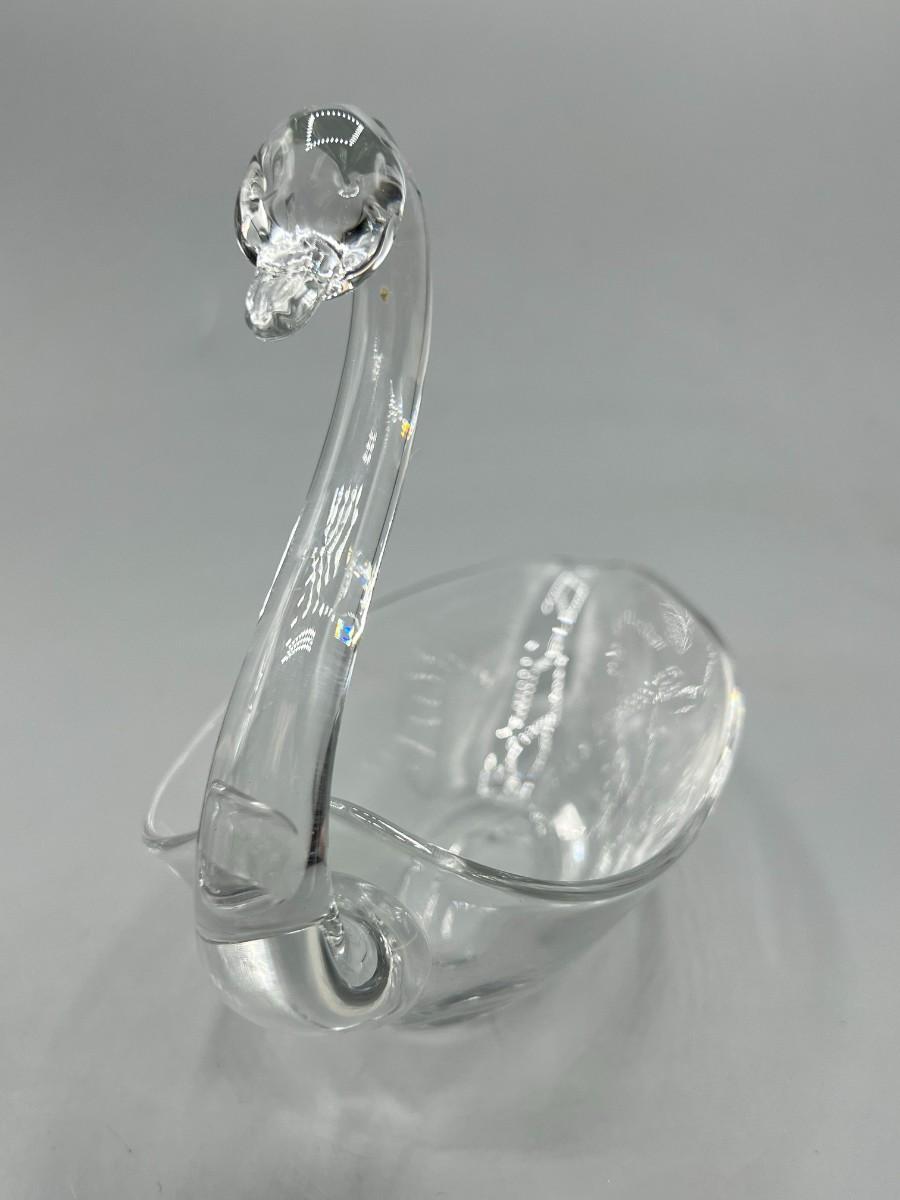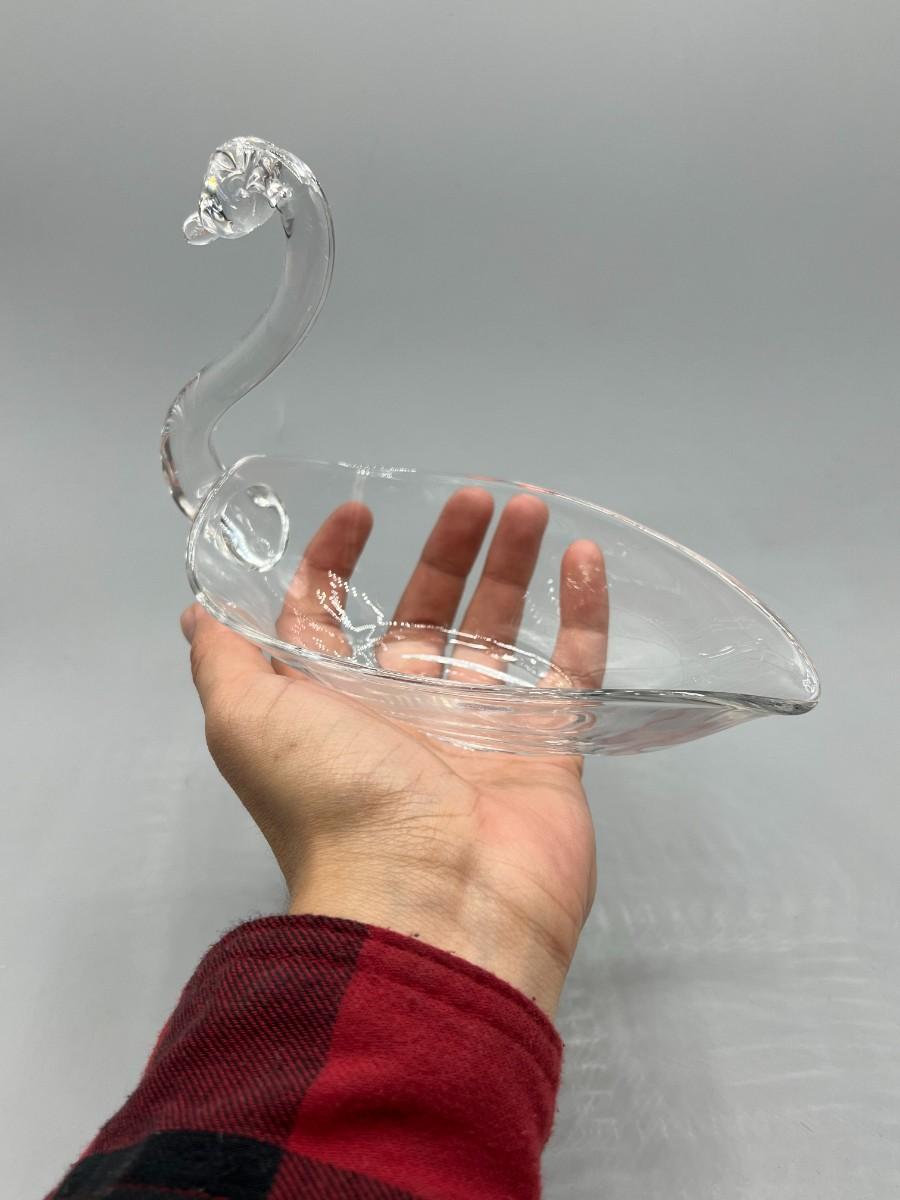 Vintage Clear Glass Swan Dresser Trinket Dish Bowl