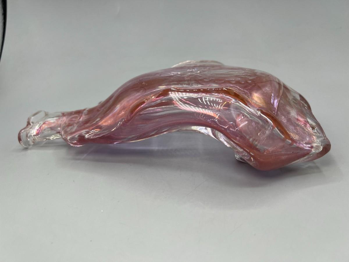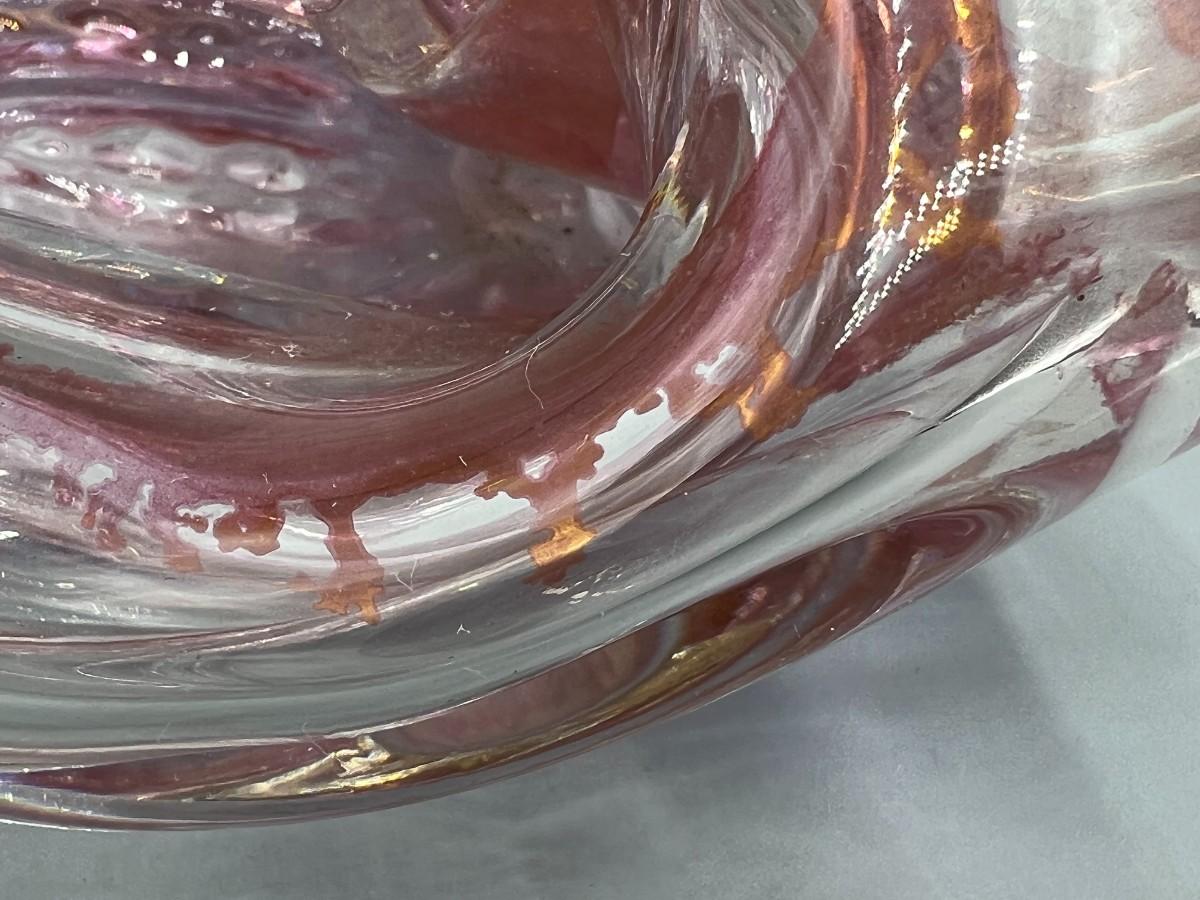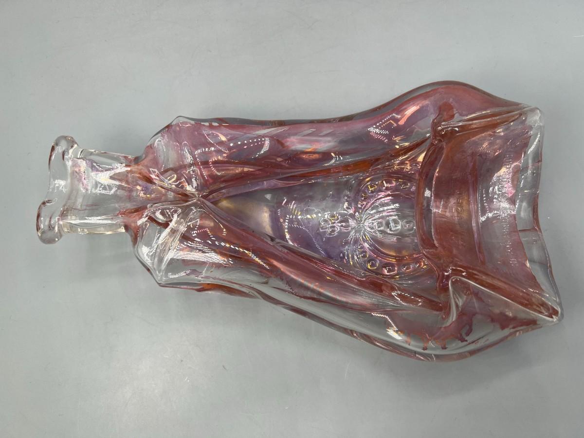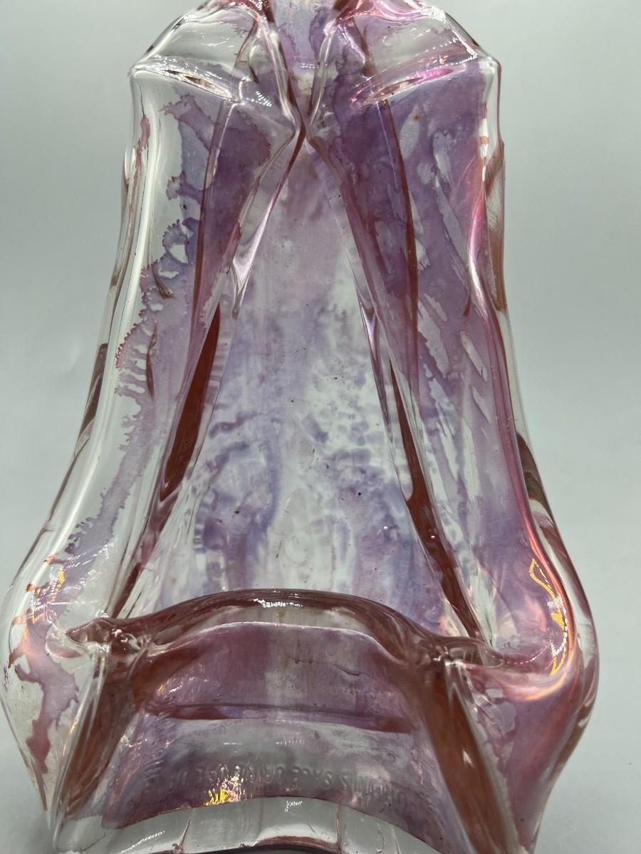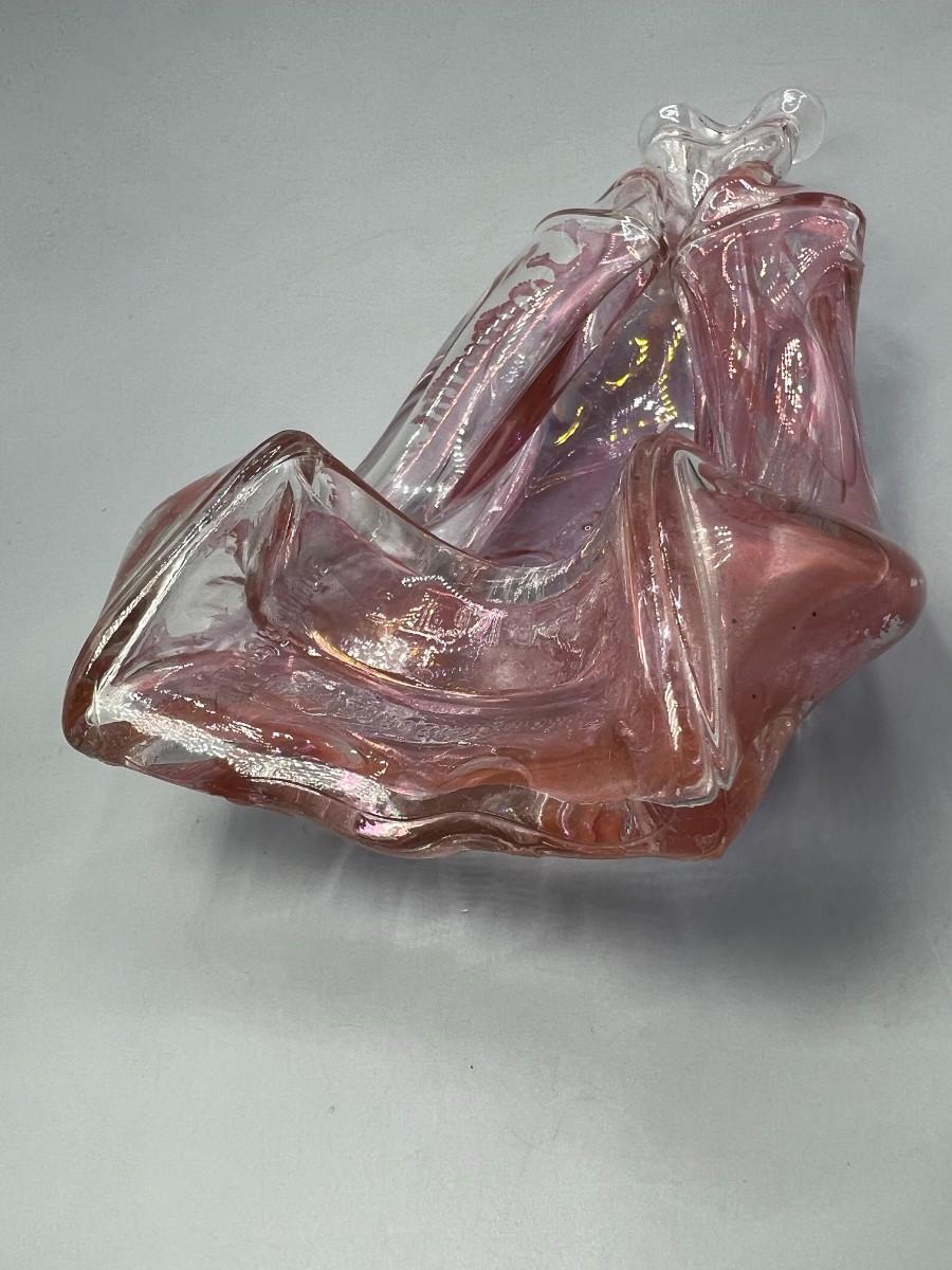 Vintage Clear Pink Color Art Glass Abstract Surreal Crumpled Glass Bottle Ashtray Trinket Dish