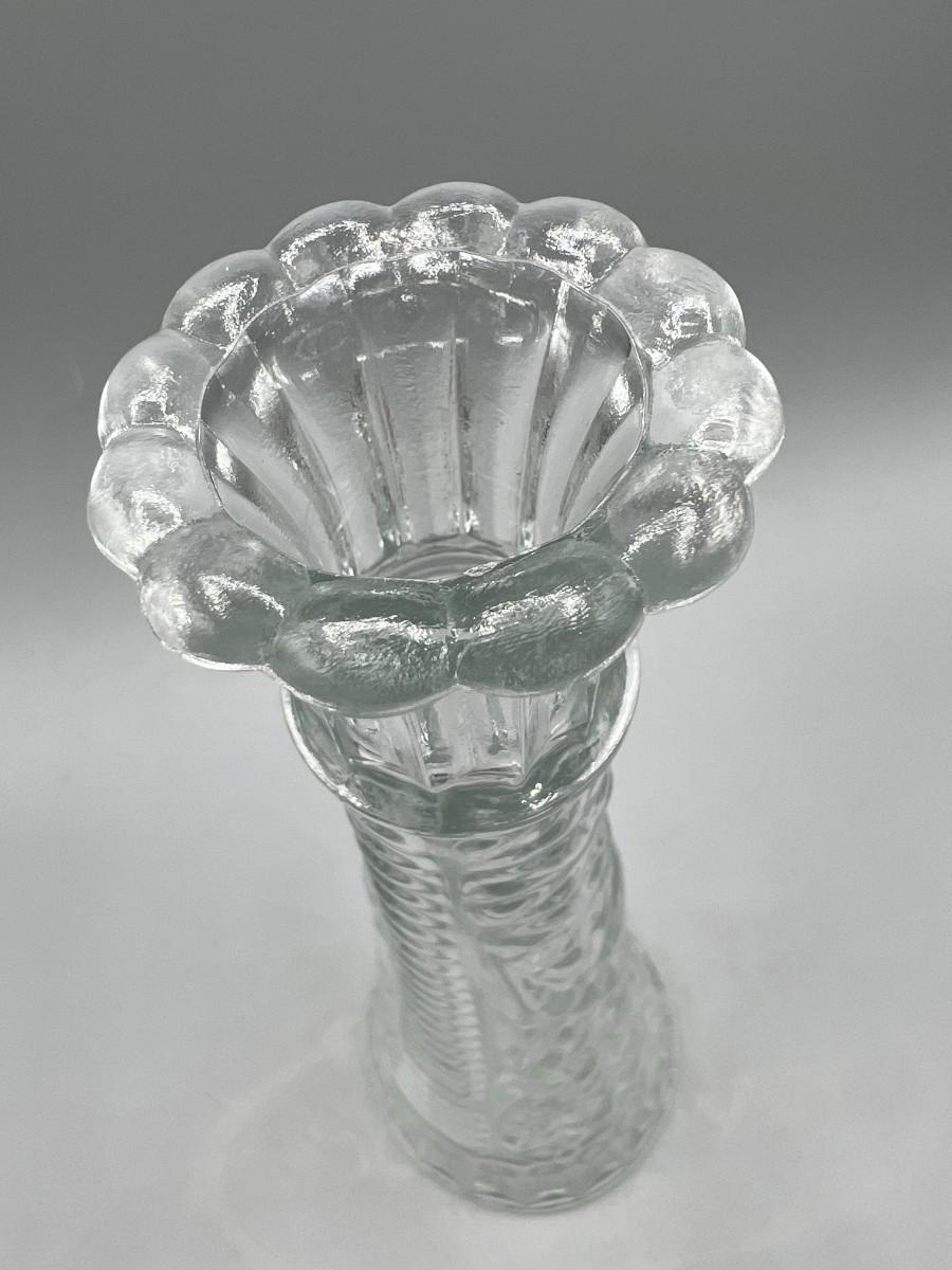 Vintage Clear Pressed Glass Bud Vase. Good condition. 9" size.