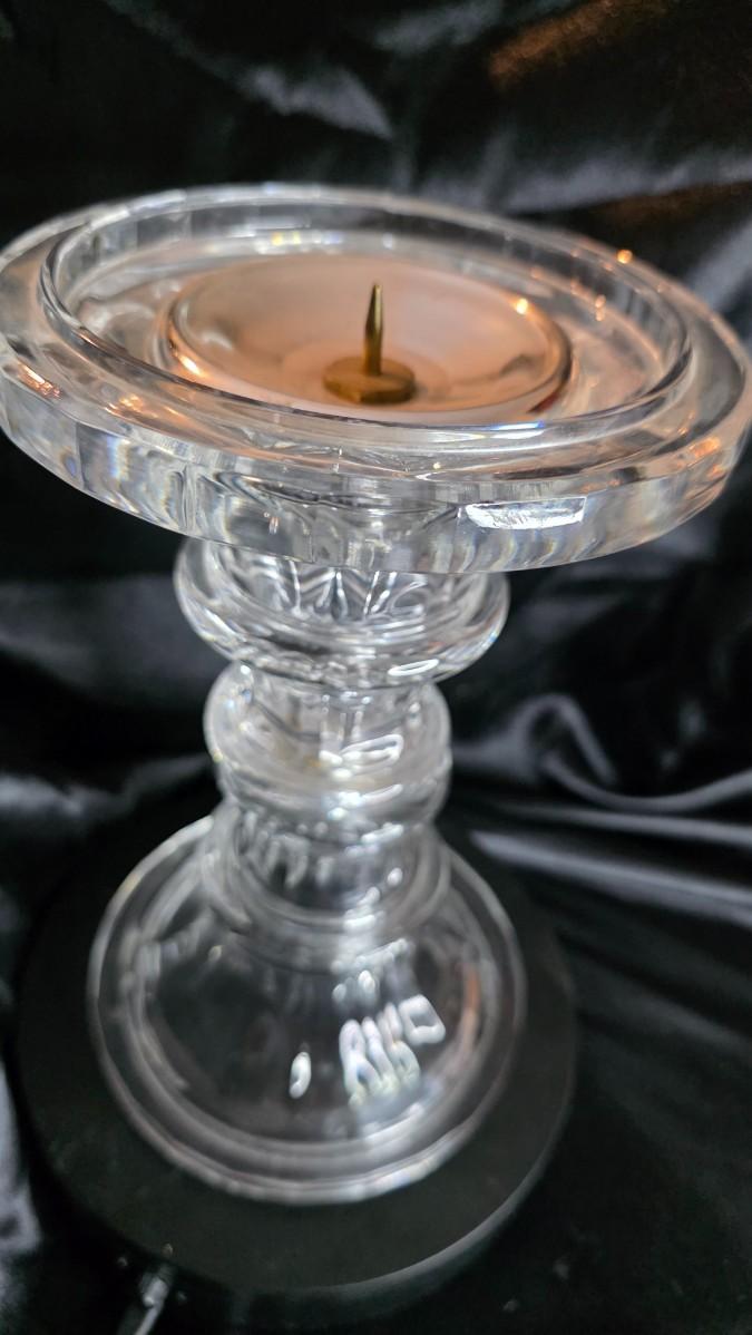Vintage Clear Pressed Glass Pedestal Candle Holder – Heavy Molded Crystal-Style Decor
