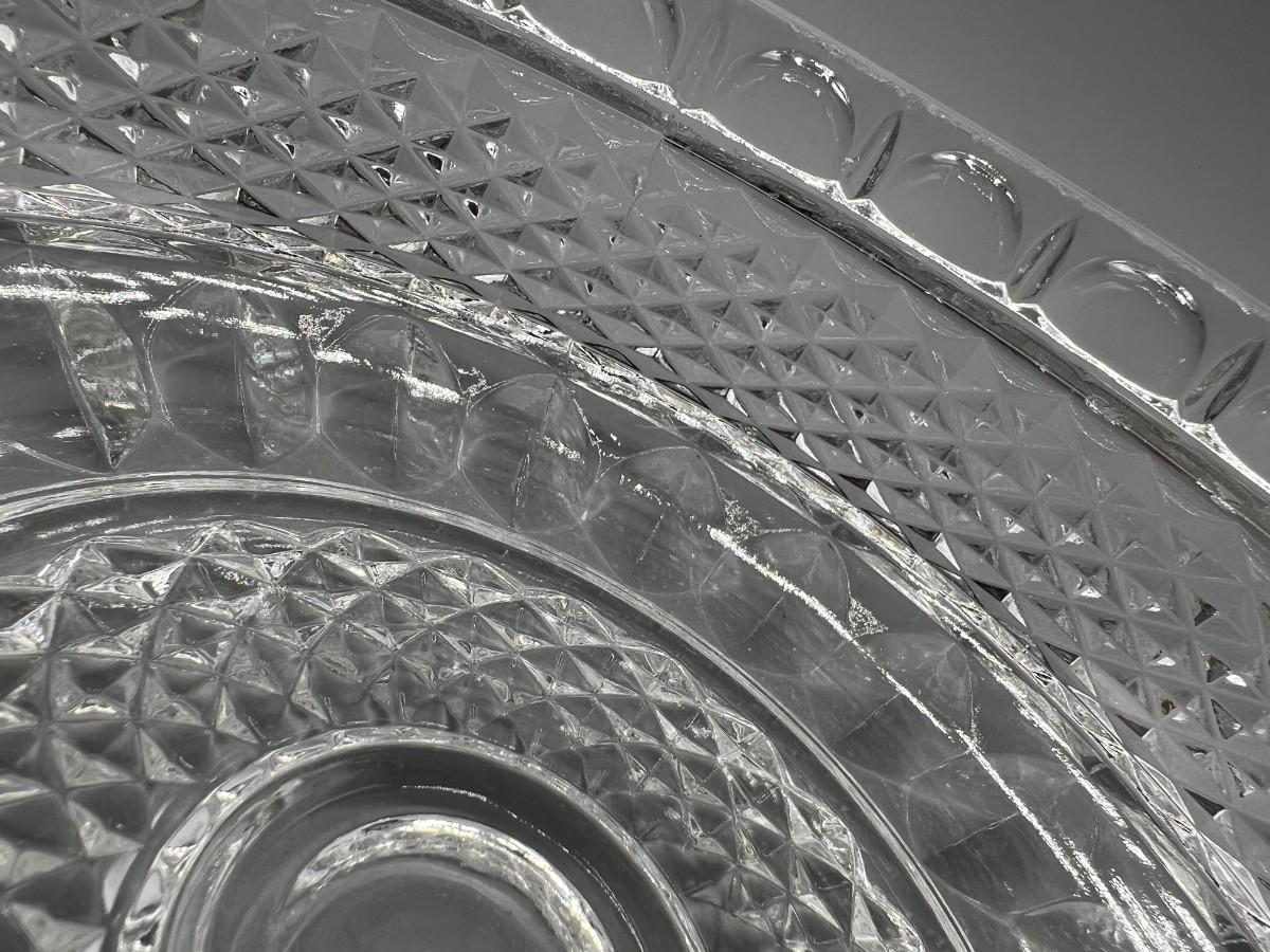 Vintage Clear Pressed Glass Serving Bowl. Good condition, about 8" diameter.