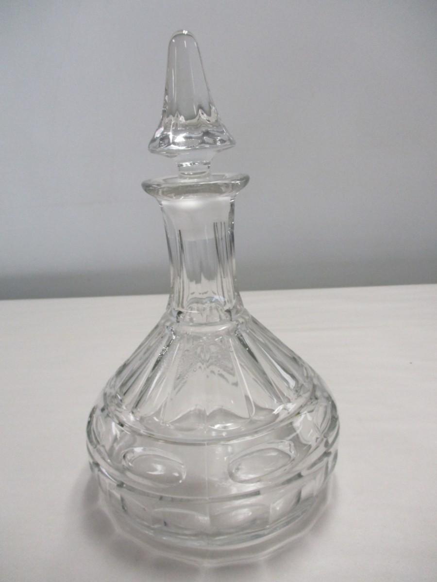 Vintage Clear Pressed Glass Thumbprint Whiskey Decanter