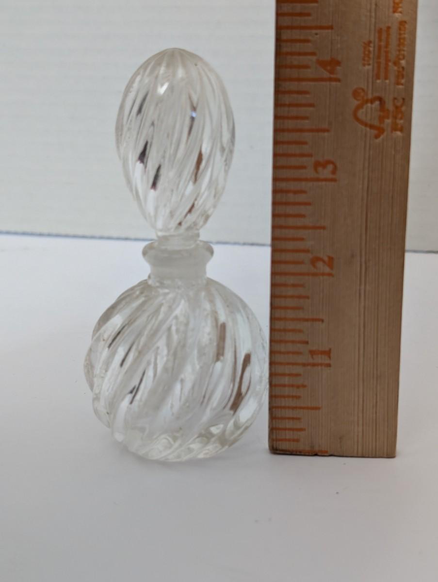 Vintage Clear Swirl Optic Glass Perfume Bottle with Matching Stopper Vanity