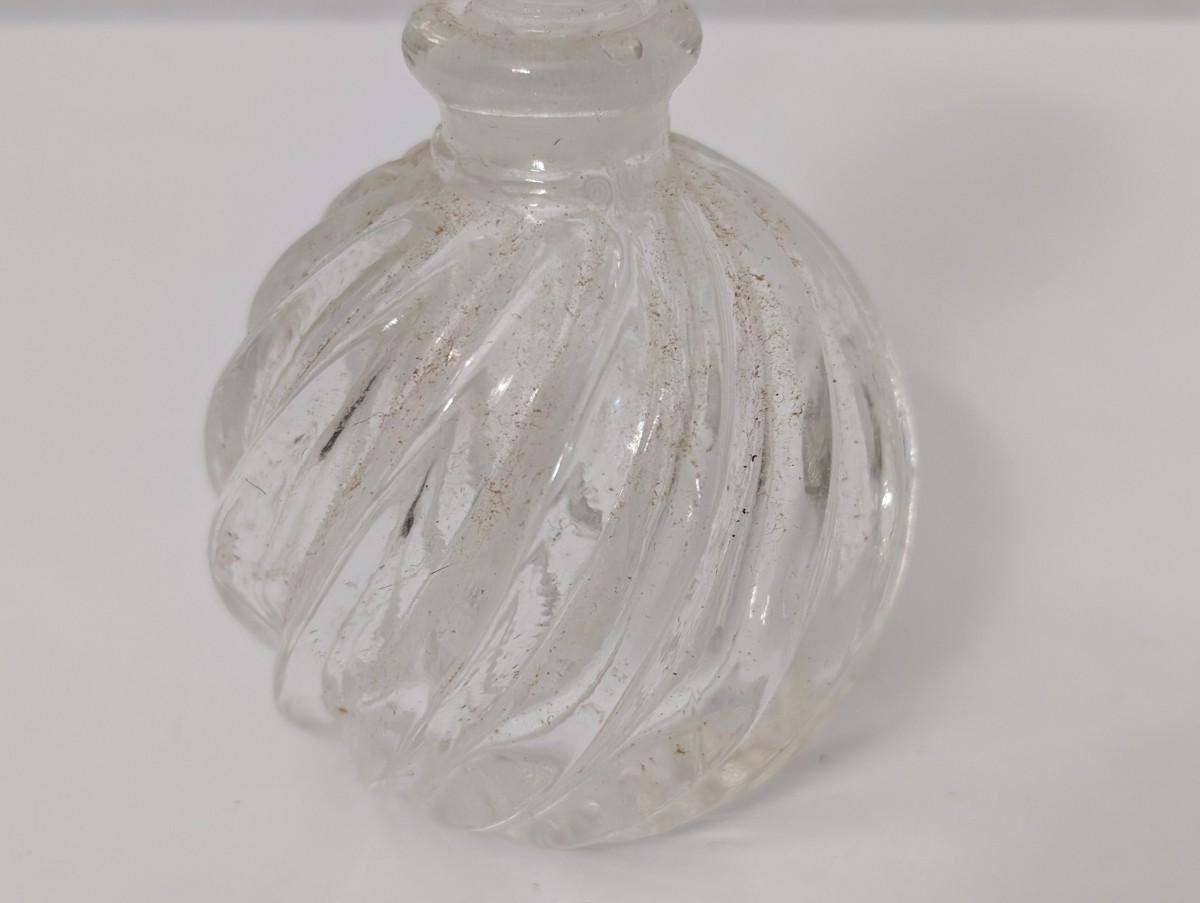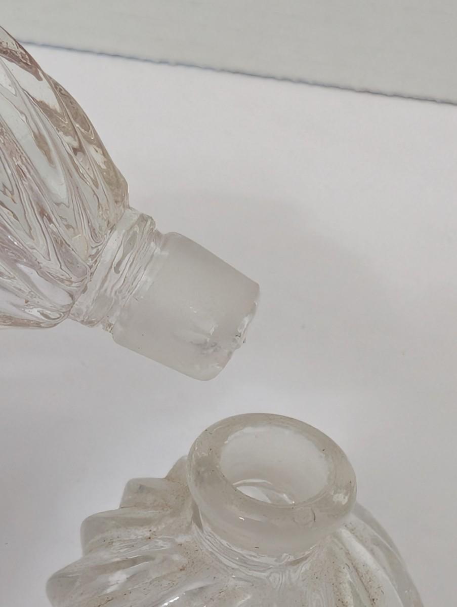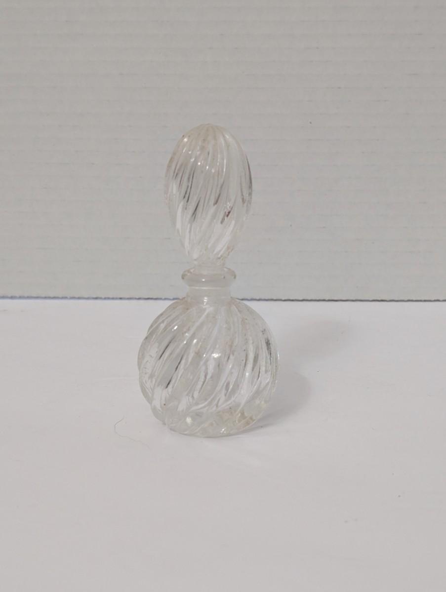 vintage perfume bottle, clear glass perfume bottle, swirl optic glass, twisted glass bottle, vanity perfume bottle, collectible glass, vintage vanity decor