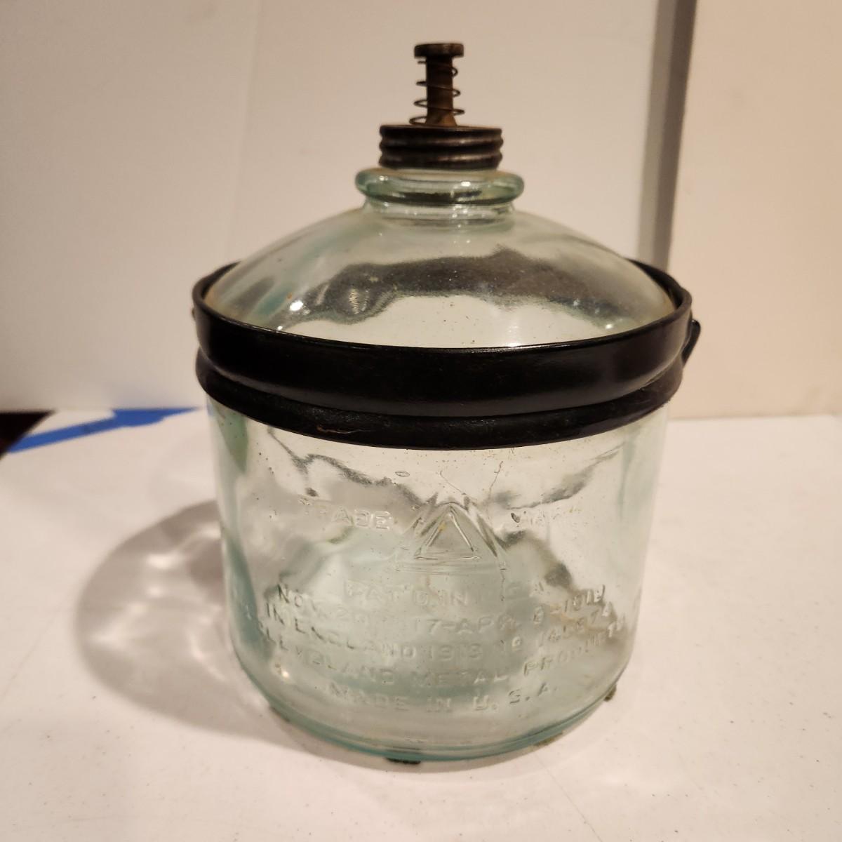 Vintage Cleveland Metal Product Glass Kerosene Jug
