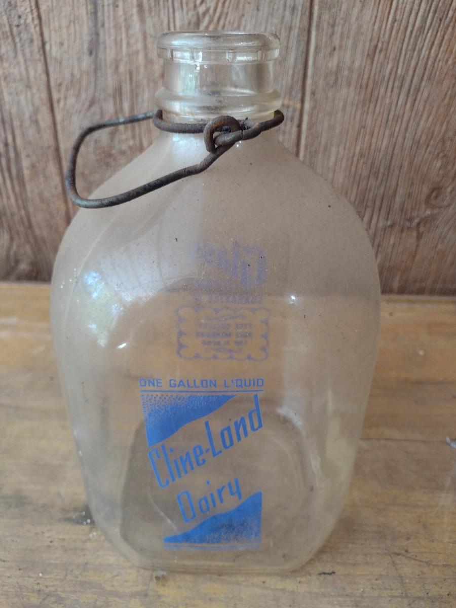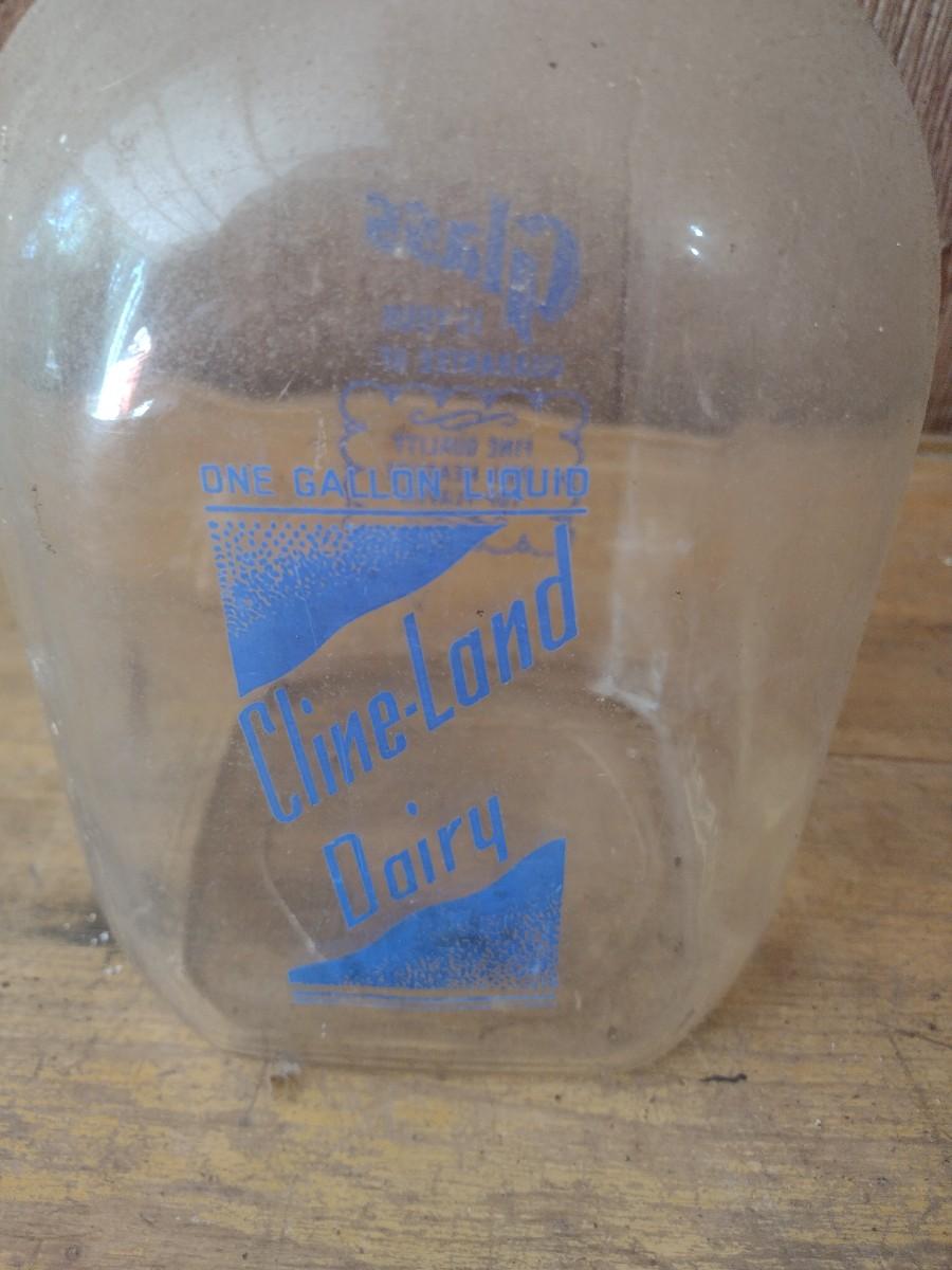 Vintage Cline-Land Painted Logo Dairy Glass One Gallon Milk Bottle (#44)